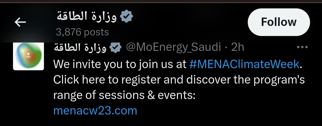 دعت وزارة الطاقة السعودية كل من يهتم بمجال المناخ الإطلاع على برنامج فعاليات أسبوع المناخ في الشرق الأوسط وشمال أفريقيا.