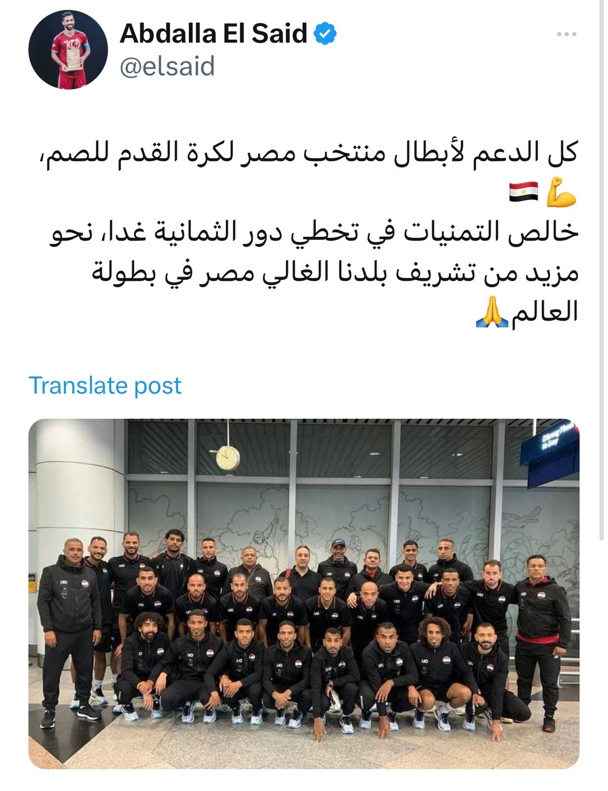 وكتب السعيد على حساباته بمواقع التواصل الاجتماعي قائلا:" كل الدعم لأبطال منتخب مصر لكرة القدم للصم،وخالص التمنيات في تخطي دور الثمانية غدا، نحو مزيد من تشريف بلدنا الغالي مصر في بطولة العالم".