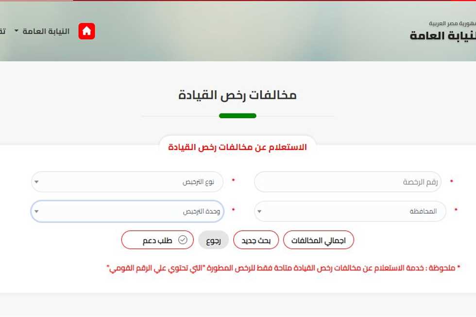 اختيار نوع المخالفة رخص المركبات أو مخالفات رخص القيادة.