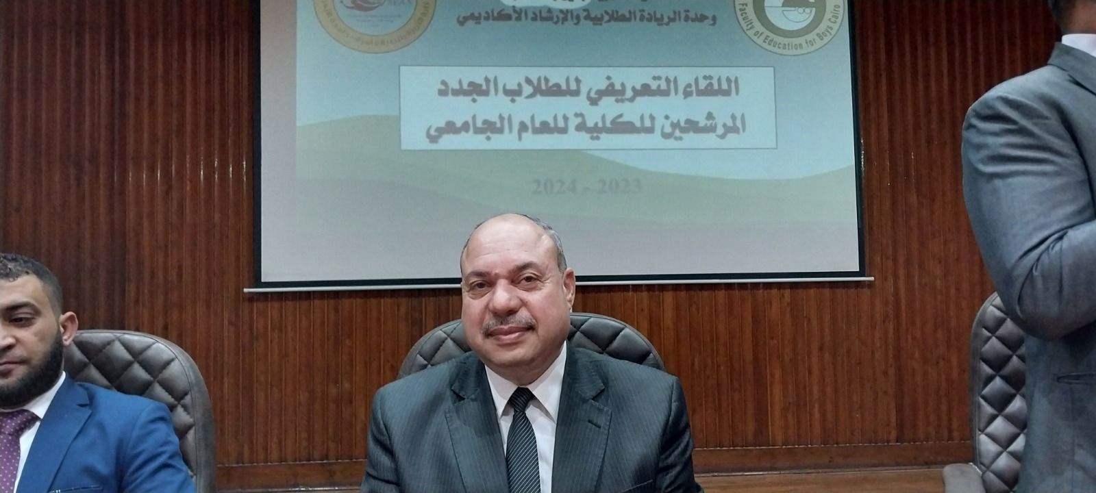 جاء ذلك، لليوم الثاني على التوالي وبرعاية من  الدكتور خالد عرفان عميد الكلية، والدكتور جمال الهواري وكيل الكلية لشؤون التعليم والطلاب، والدكتور عطية السيد وكيل الكلية للدراسات العليا والبحوث، وبالتعاون مع وحدة الإرشاد الأكاديمي بالكلية وفي إطار استقبال الطلاب الجدد والقدامى في بداية العام الدراسي الجديد 2023- 2024م.
