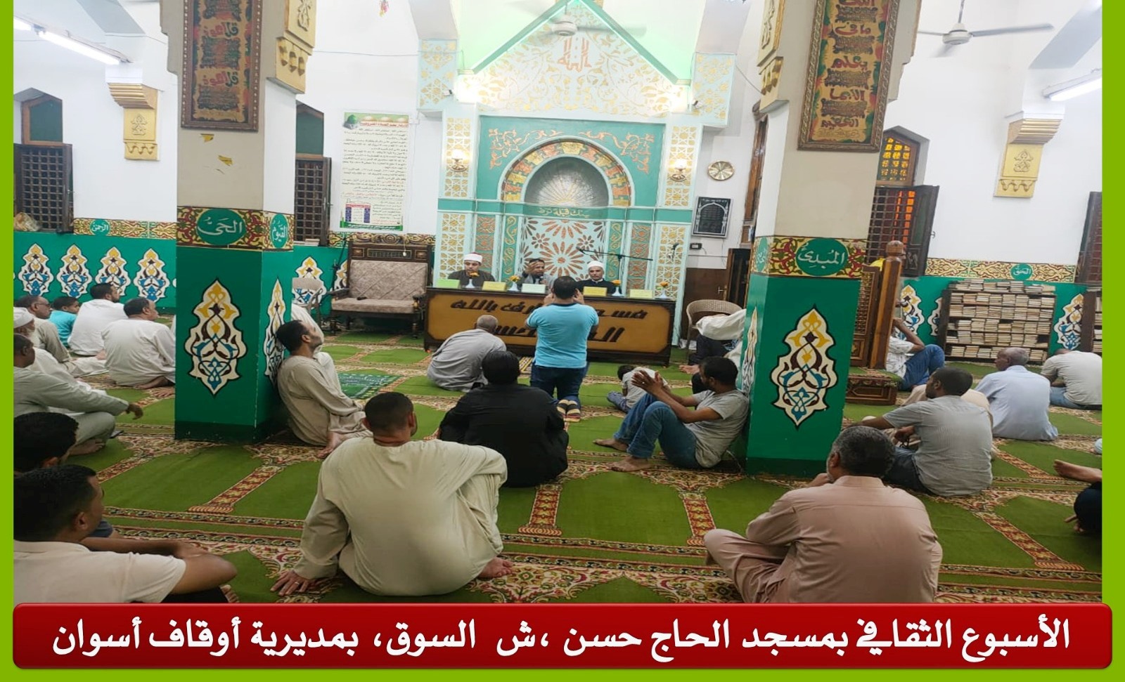 وفي محافظة أسوان أقيم الأسبوع الثقافي بمسجد الحاج حسن.