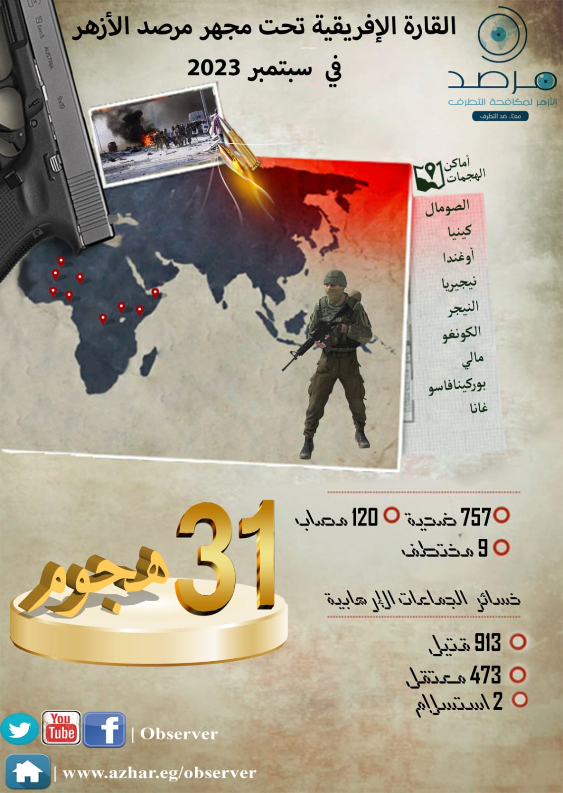 مرصد الأزهر ينشر مؤشر أنشطة التنظيمات الإرهابية في إفريقيا خلال سبتمبر 2023