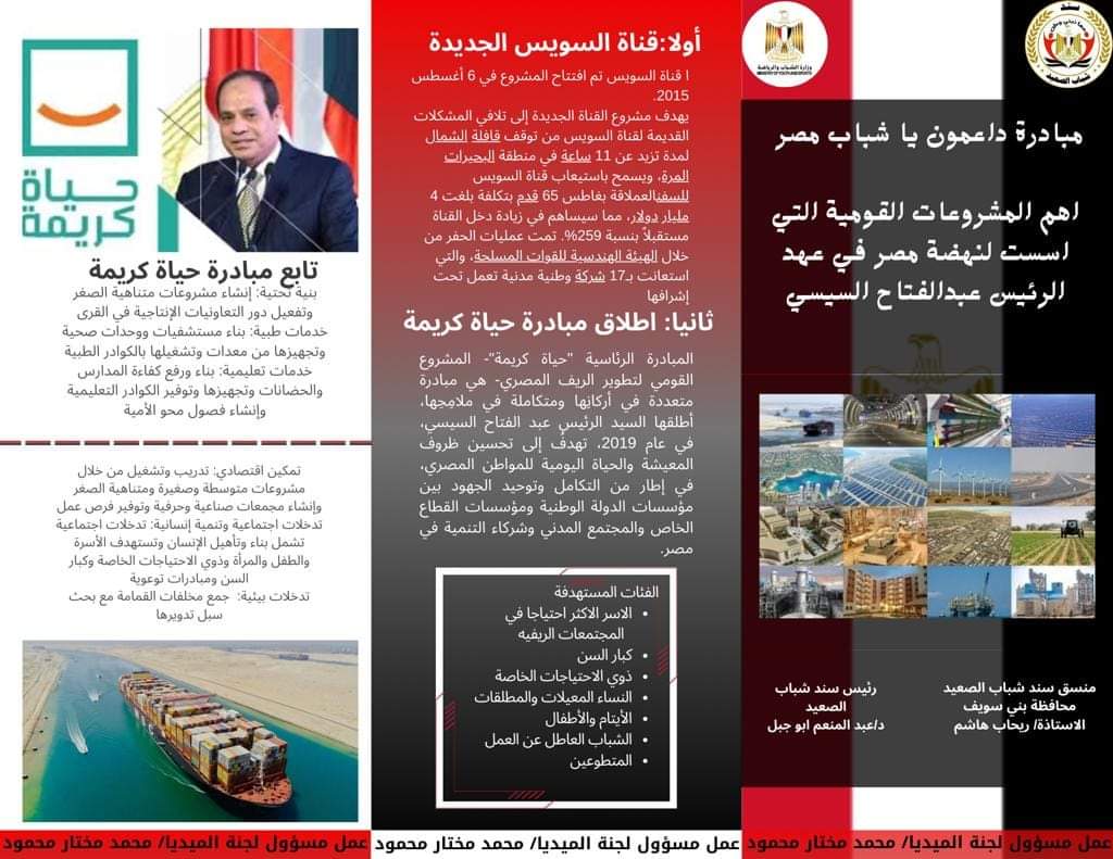 أطلقت وزارة الشباب والرياضة، من خلال الإدارة المركزية للتعليم المدني - الإدارة العامة للتعليم المدني وتأهيل الكوادر الشبابية بالتعاون مع الكيان الشبابي سند شباب الصعيد ومديرية الشباب والرياضة بمحافظة بني سويف، ثالث فعاليات حملة "داعمون يا شباب مصر"، تحت رعاية الدكتور أشرف صبحي، وزير الشباب والرياضة، وتوجيهاته المستدامة بتبني الكثير من المبادرات والبرامج ذات الصلة بتعزيز المشاركة السياسية للشباب وتعزيز دورهم كقوة إيجابية في المجتمع.