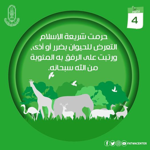 أضافت الإفتاء، أن الإسلام أمر بالترفق بالحيوان، ونهى عن التعرض له بالضرر والأذى دون سبب معتبر شرعًا، وتوعد من يفعل ذلك بالعقاب الشديد؛ قال سيدنا رسول الله ﷺ: «دخلت امرأة النار في هرة حبستها لا هي أطعمتها ولا هي تركتها تأكل من خشاش الأرض». [متفق عليه]
