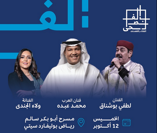 ومن المقرر أن يقام الحفل في الـ 12 من أكتوبر الجاري مع الفنان الكبير لطفي بوشناق والفنانة ولاء الجندي، على مسحر أبو بكر سالم.