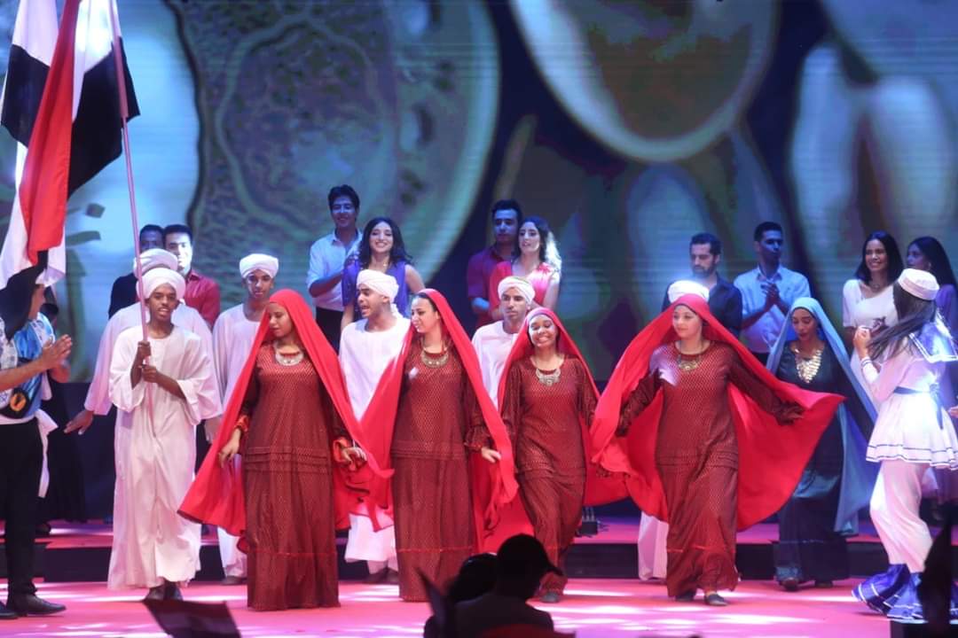 بدأت إحتفالية مصر 5000 و50 سنة عبور باوبريت جيش الشمس الذي كتبه واحنه الموسيقار محمد مصطفي وقدمه المطربون اميرة احمد ووليد حيدر ونهاد  فتحي ومصطفي النجدي بمصاحبة فرق الفنون الشعبية التابعة للشئون الفنية وفرقة مصطفي حجاج الاستعراضية الذي صمم الاستعراضات .