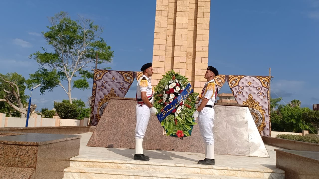 وقام اللواء محمد عبد الفضيل شوشة محافظ شمال سيناء، يرافقه اللواء أسامة عبد المطلب، مساعد قائد الجيش الثاني الميداني، والقيادات الشعبية والتنفيذية بالمحافظة وشيوخ وعواقل سيناء، بوضع إكليل الزهور علي قبر الجندي المجهول بساحة الشهداء بمدينة العريش، وقراءة الفاتحة على أرواح الشهداء، وسط عزف الموسيقى العسكرية لسلام الشهيد.