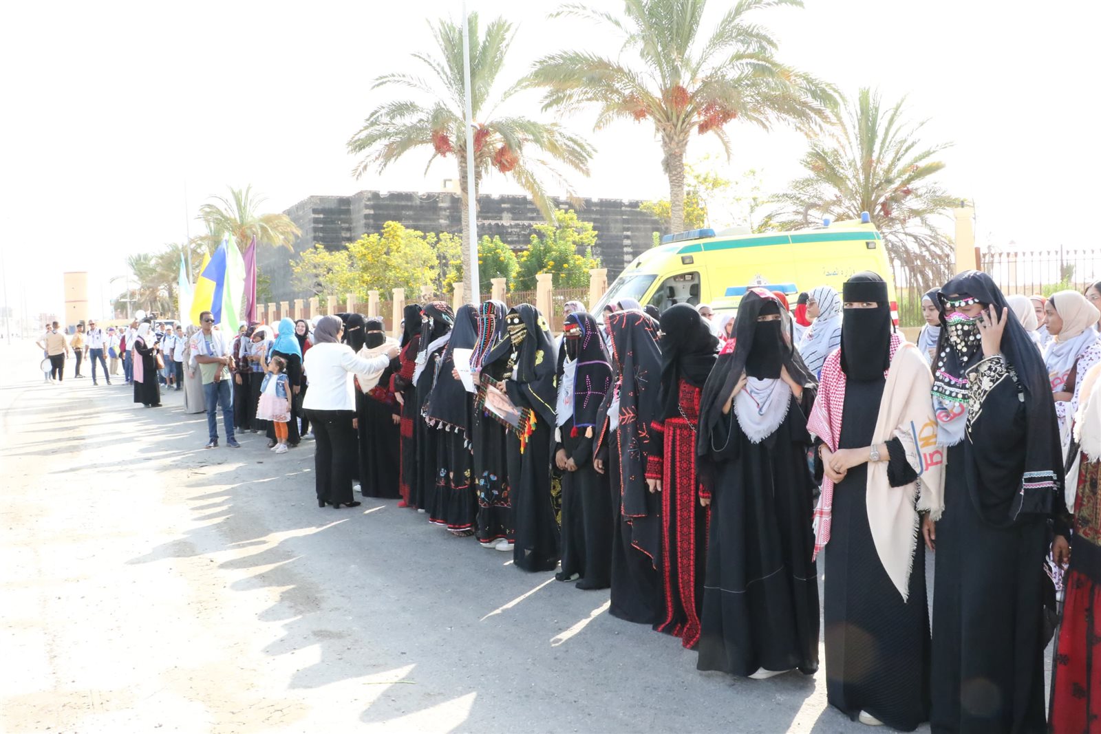 ارتدت الفتيات والسيدات الزي الرسمي الفلكلوري التراثي الذى يعبر عن هوية كل محافظة مشاركة بالملتقى من محافظات شمال سيناء، وجنوب سيناء، والوادي الجديد، و"حلايب والشلاتين وأبو رماد" بالبحر الأحمر، ومطروح، وأسوان، والمشاركات من "الأسمرات" بالقاهرة، وكن في استقبال الموكب.
