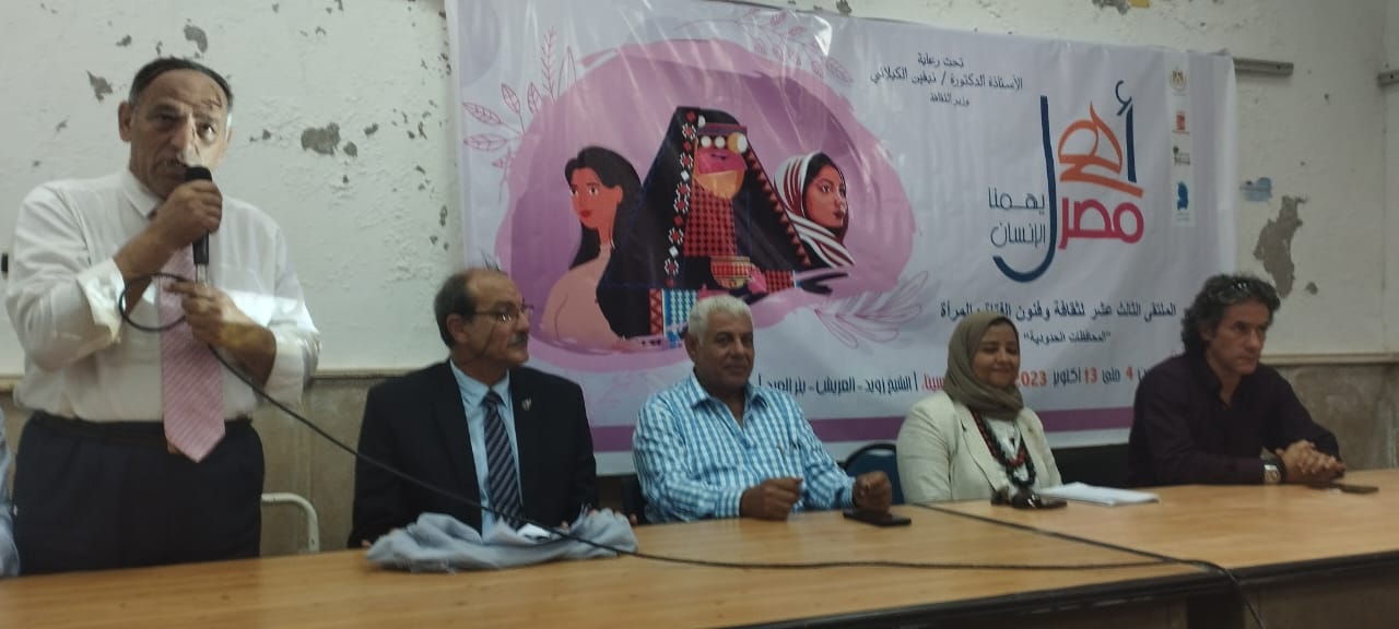 جاء ذلك فى حضور أمل عبدالله رئيس إقليم القناة وسيناء الثقافي، والمخرج أحمد السيد عضو اللجنة العليا لمشروع أهل مصر، د. دينا هويدي مدير عام الإدارة العامة لثقافة المرأة والمشرف التنفيذى للملتقى، أشرف المشرحاني مدير فرع ثقافة شمال سيناء.
