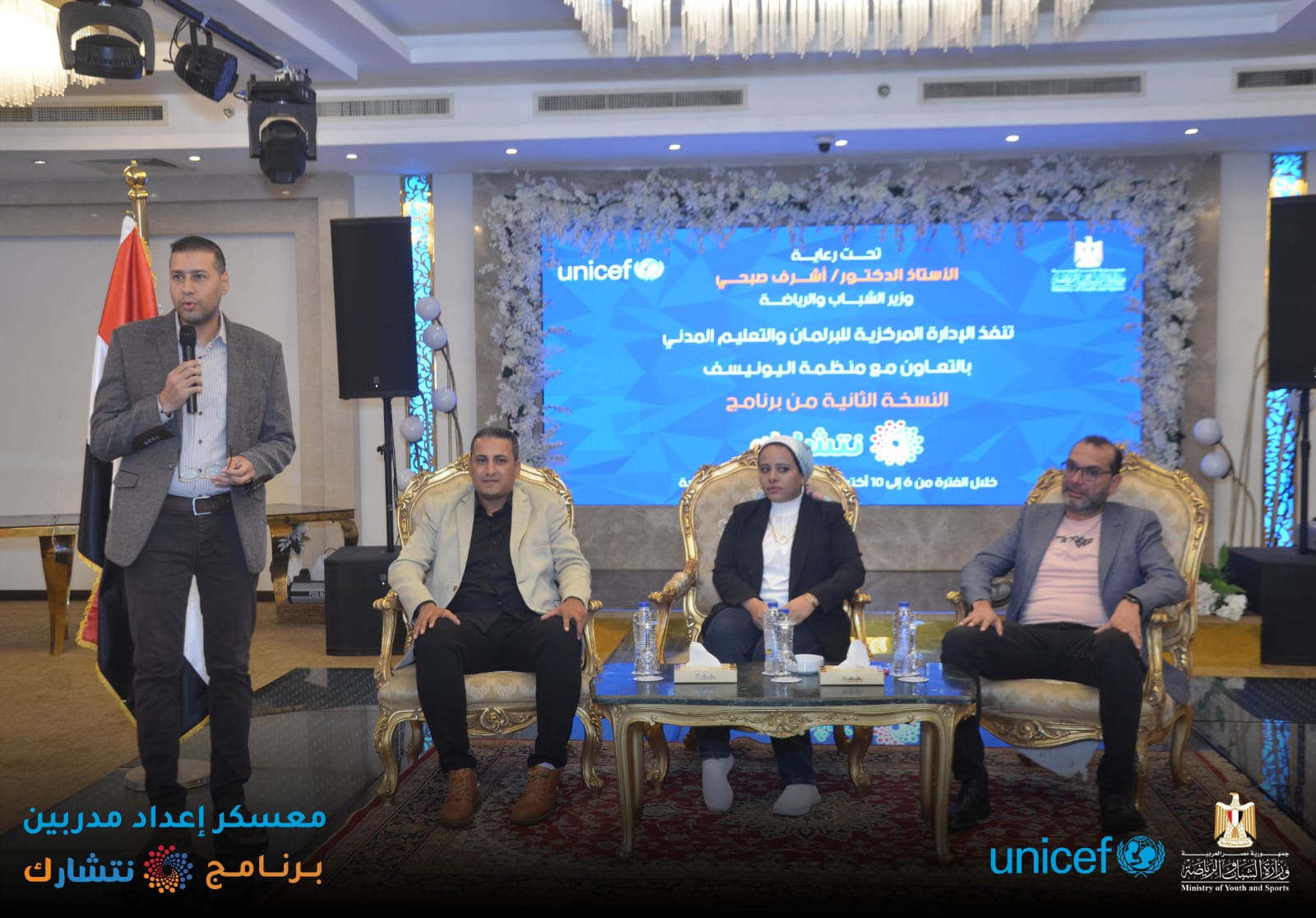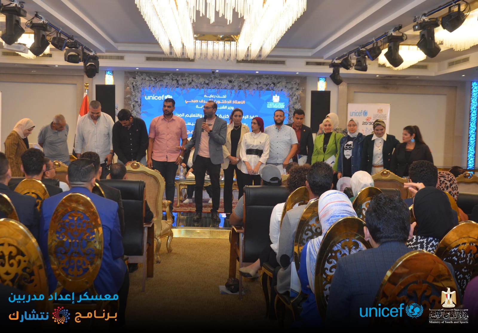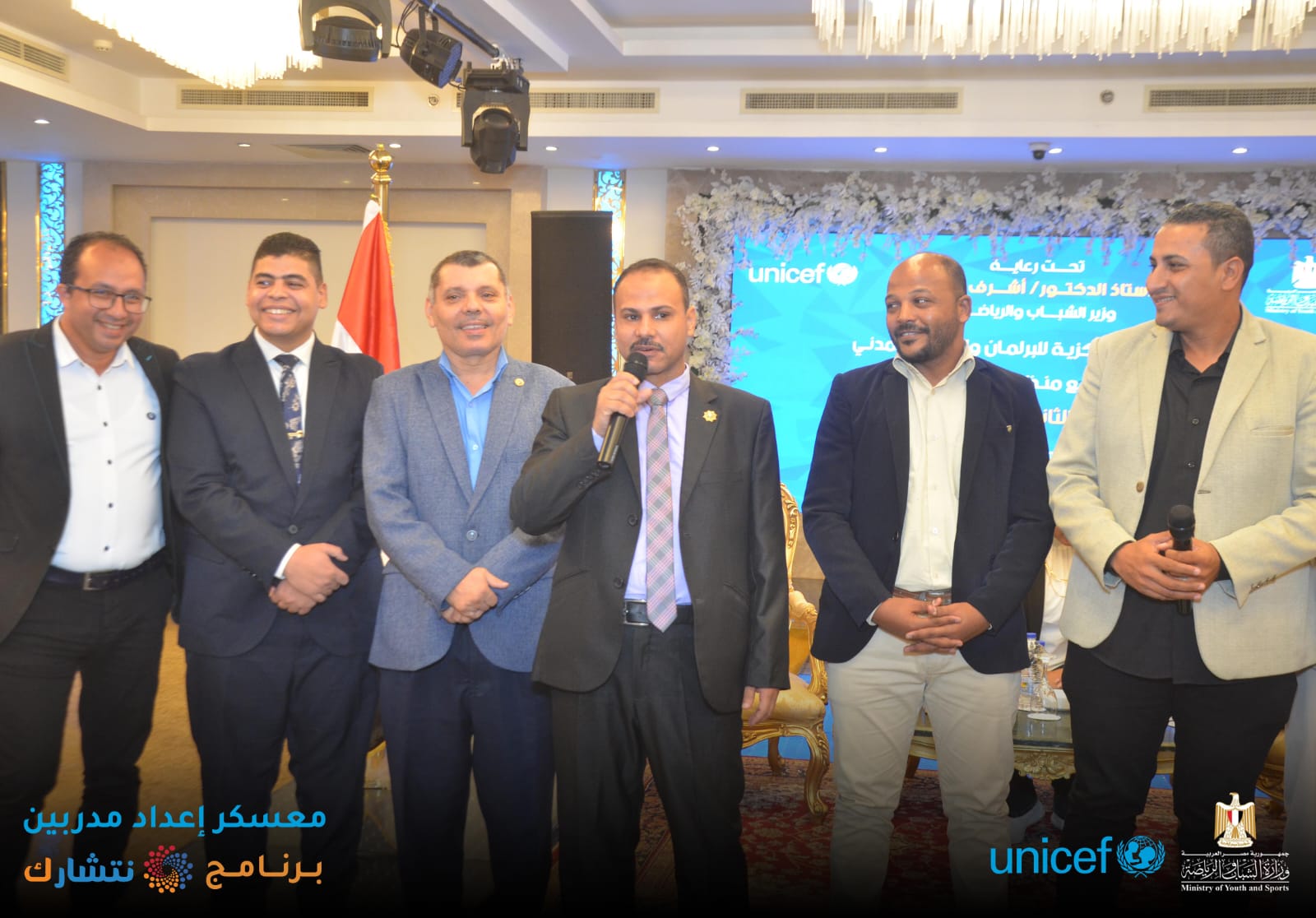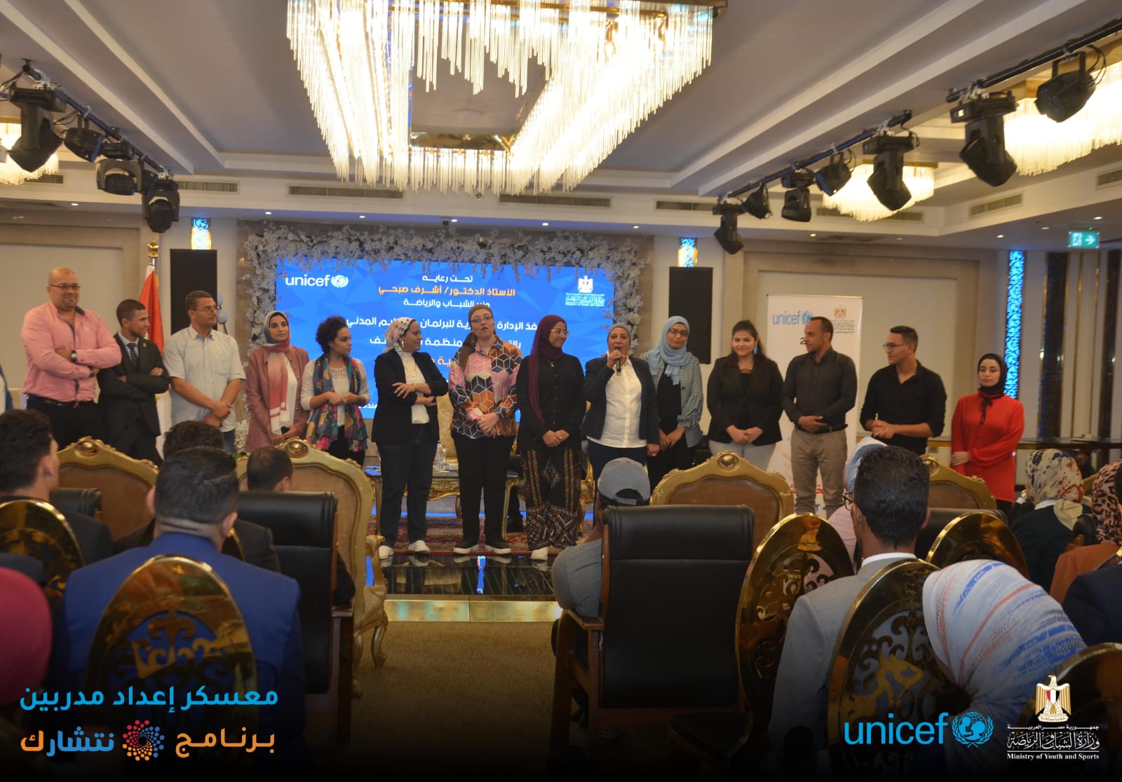 اختتمت وزارة الشباب والرياضة ، من خلال الإدارة المركزية للتعليم المدني [ الإدارة العامة لبرلماني الطلائع والشباب ] وبالتعاون مع منظمة اليونيسف ، اليوم الثلاثاء ، فعاليات برنامج « نتشـارك » في نسخته الثانية لإعداد مدربين ( TOT ) لتنفيذ المبادرات المجتمعية ، بدار الهئية الهندسية للقوات المسلحة ، بمشاركة 150 متدرب من 15 محافظة ( شمال سيناء ؛ جنوب سيناء ؛ أسوان ؛ أسيوط ؛ القاهرة ؛ الاسكندرية ؛ الوادي الجديد ؛ سوهاج ؛ قنا ؛ مطروح ؛ كفر الشيخ ؛ دمياط ؛ الجيزة ؛ القليوبية ؛ البحر الأحمر ) ، بدار الهئية الهندسية للقوات المسلحة ، تحت رعاية الدكتور أشرف صبحي وزير الشباب والرياضة .