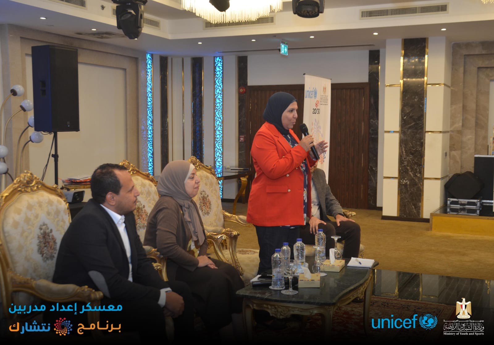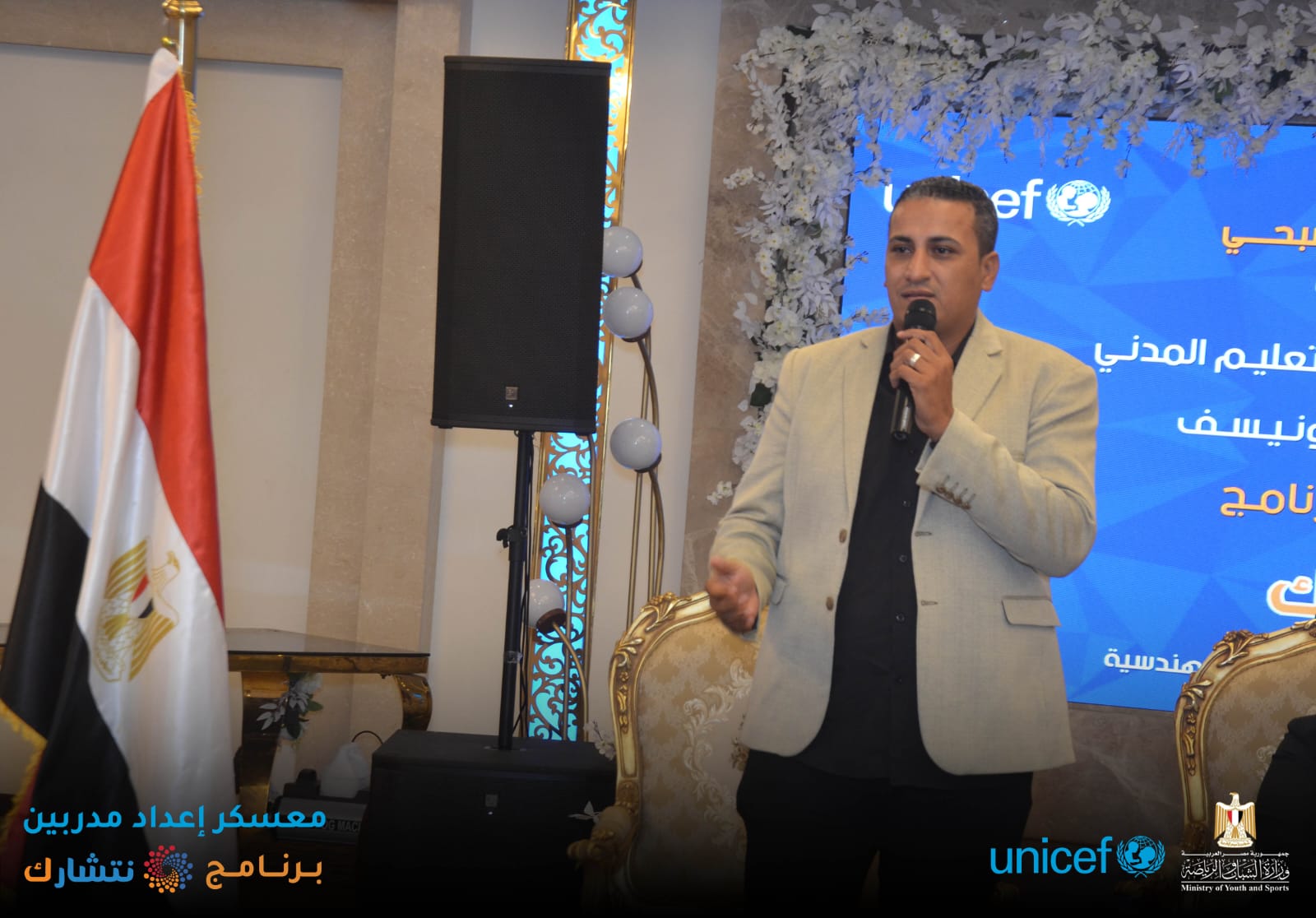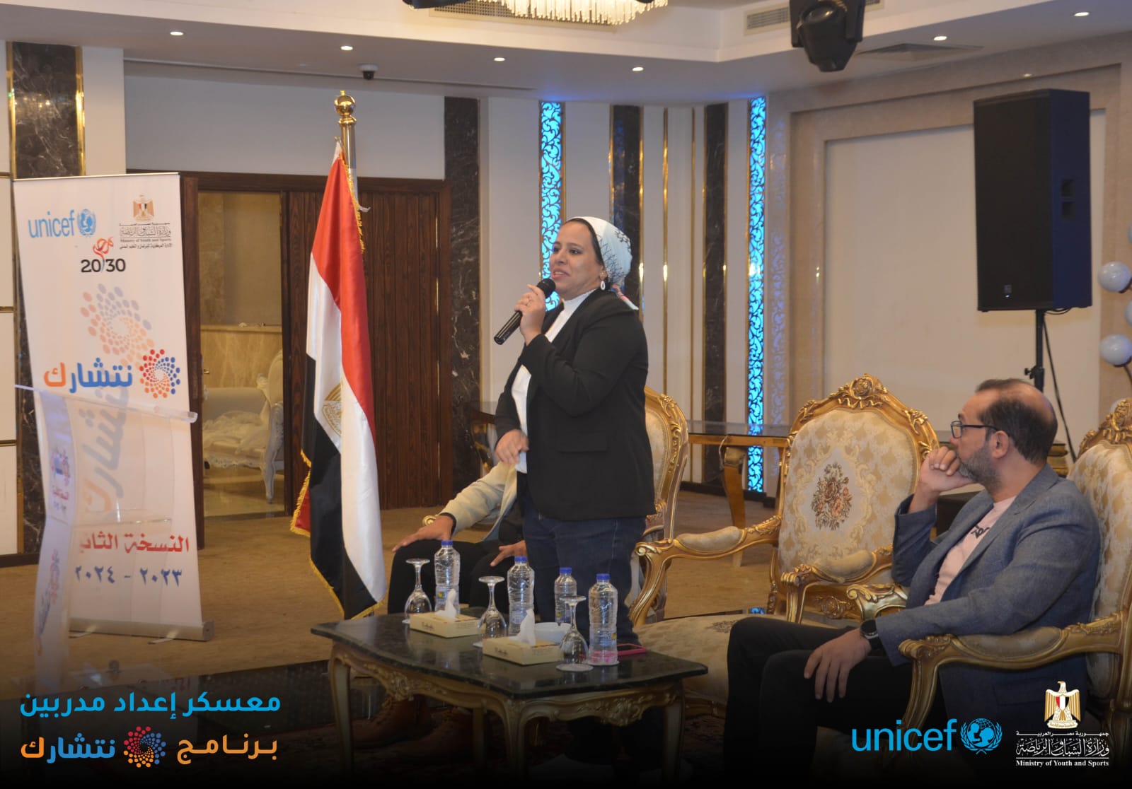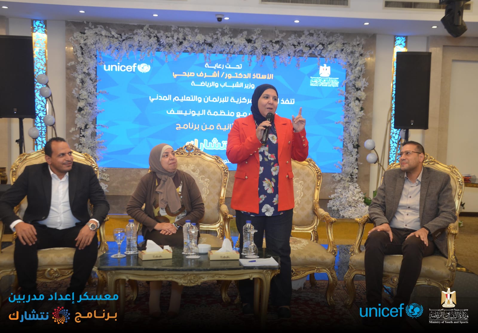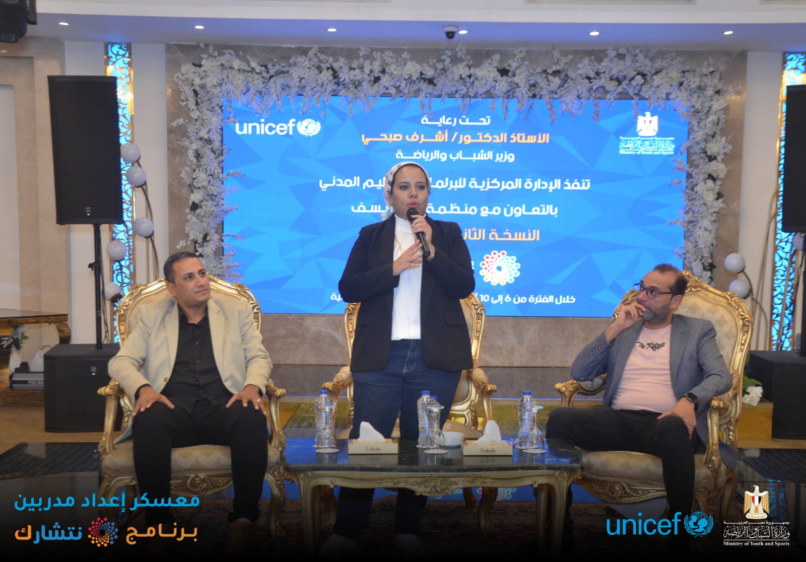 اختتمت وزارة الشباب والرياضة ، من خلال الإدارة المركزية للتعليم المدني [ الإدارة العامة لبرلماني الطلائع والشباب ] وبالتعاون مع منظمة اليونيسف ، اليوم الثلاثاء ، فعاليات برنامج « نتشـارك » في نسخته الثانية لإعداد مدربين ( TOT ) لتنفيذ المبادرات المجتمعية ، بدار الهئية الهندسية للقوات المسلحة ، بمشاركة 150 متدرب من 15 محافظة ( شمال سيناء ؛ جنوب سيناء ؛ أسوان ؛ أسيوط ؛ القاهرة ؛ الاسكندرية ؛ الوادي الجديد ؛ سوهاج ؛ قنا ؛ مطروح ؛ كفر الشيخ ؛ دمياط ؛ الجيزة ؛ القليوبية ؛ البحر الأحمر ) ، بدار الهئية الهندسية للقوات المسلحة ، تحت رعاية الدكتور أشرف صبحي وزير الشباب والرياضة .