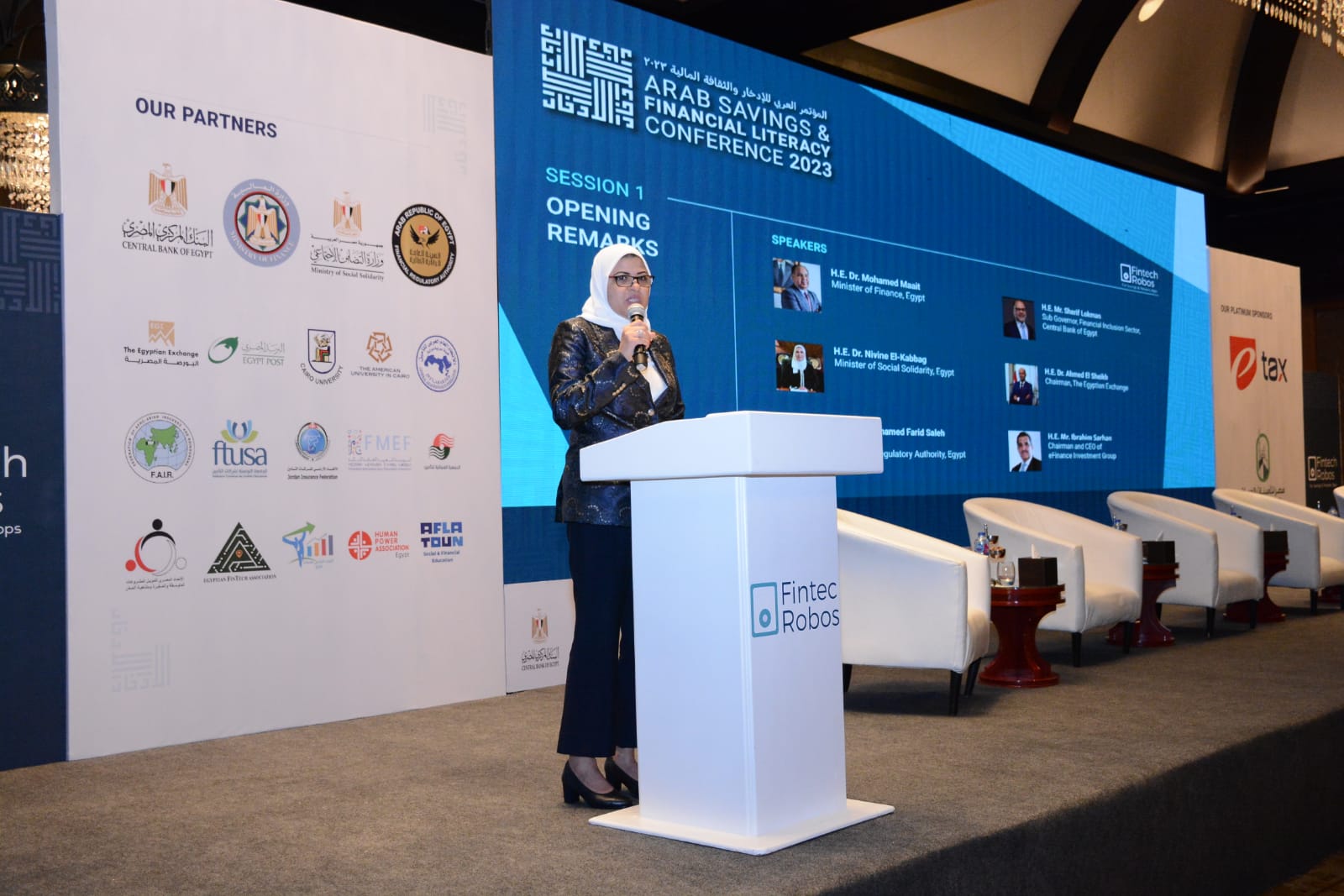 وأوضحت وزيرة التضامن الاجتماعي في كلمتها أن الادخار والشمول المالي تبرز أهميته أكثر فاكثر مع التداعيات السلبية للأزمات المتلاحقة التي يشهدها العالم، وتعكسه المؤشرات الدولية، حيث يتوقع تقرير الآفاق الاقتصادية لمنطقة الشرق الأوسط وشمال أفريقيا للبنك الدولي لعام 2023، تراجع معدل النمو بالمنطقة إلى 3.6% للعام الحالي 2023.
