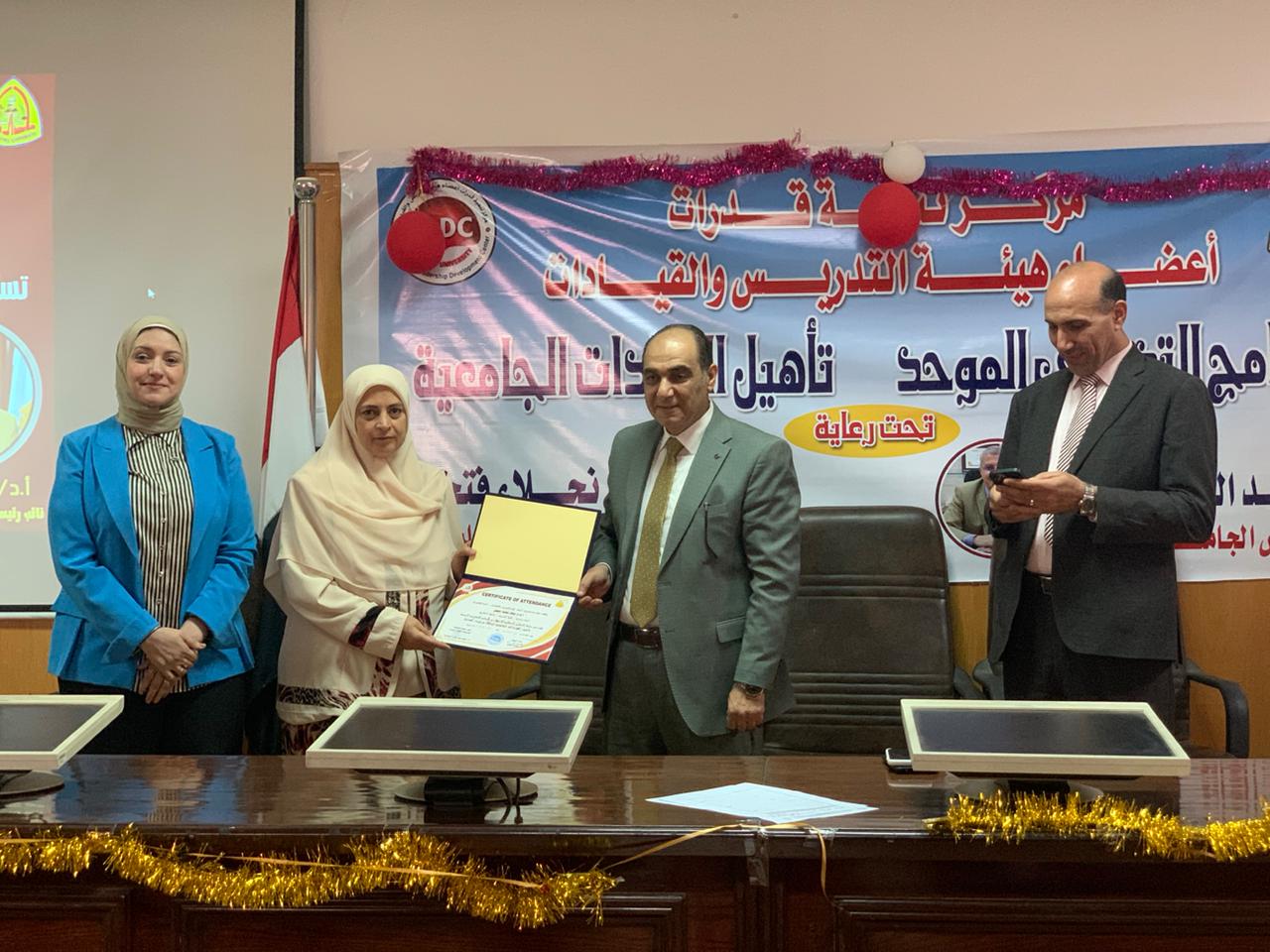 جدير بالذكر أنه فى ختام فعاليات الحفل قام الدكتور إيهاب الببلاوي بتسليم شهادات اجتياز الدورة للسادة المشاركين بالبرنامج التدريبى وعددهم ٢٥ من الوكلاء ورؤساء الأقسام بالكليات.