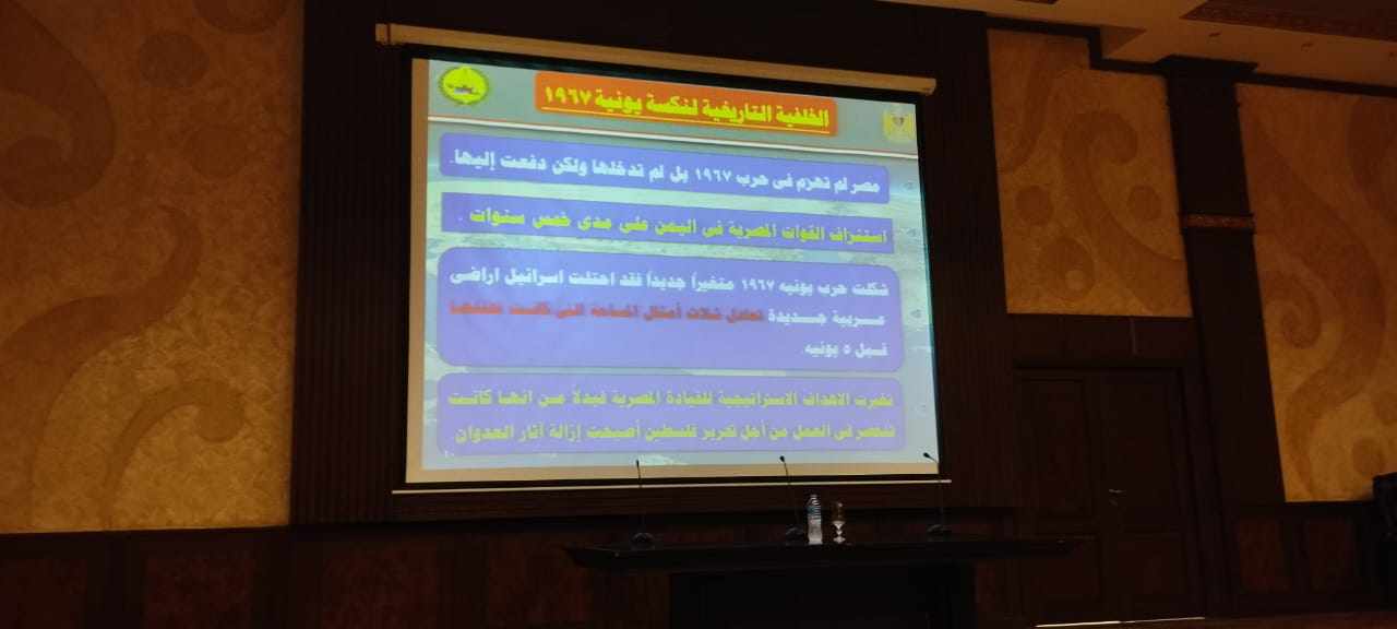 وأضاف المحافظ خلال الندوة التثقيفية "حرب أكتوبر المجيدة" أن مصر لم تهزم في حرب 67 لأنها لم تدخل الحرب طبقا للعلوم العسكرية، مؤكدا أن مراحل حرب الاستنزاف هي التي مهدت لانتصارات أكتوبر 1973، مشيدا بدور أهالي سيناء في دعم قواتنا المسلحة وتضحياتهم لاستقرار الوطن. وأن هذه الندوة لتوضيح ما بذله الآباء والأجداد أمام الأجيال الجديدة.