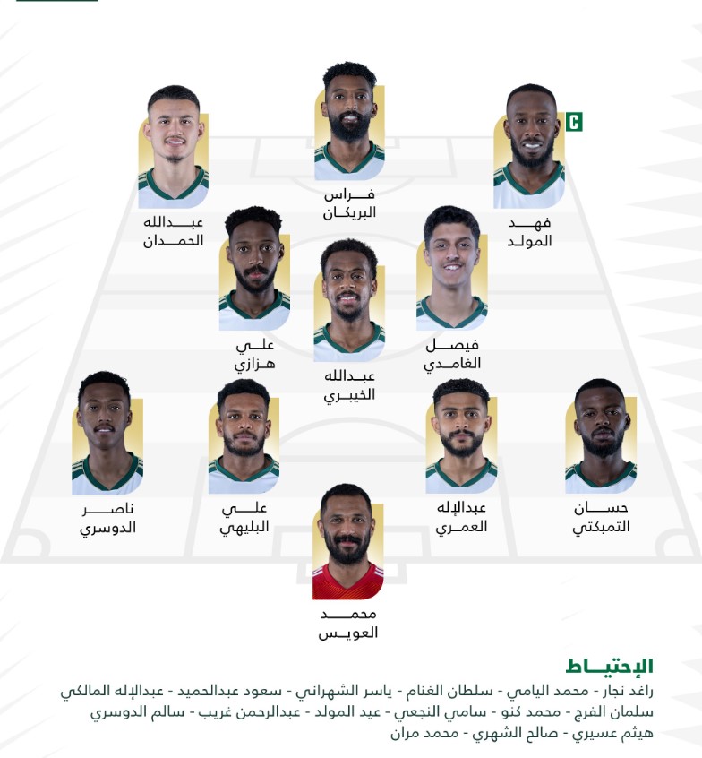 في الدفاع: ناصر الدوسري، علي البليهي، عبدالإله العمري، حسان تمبكتي.