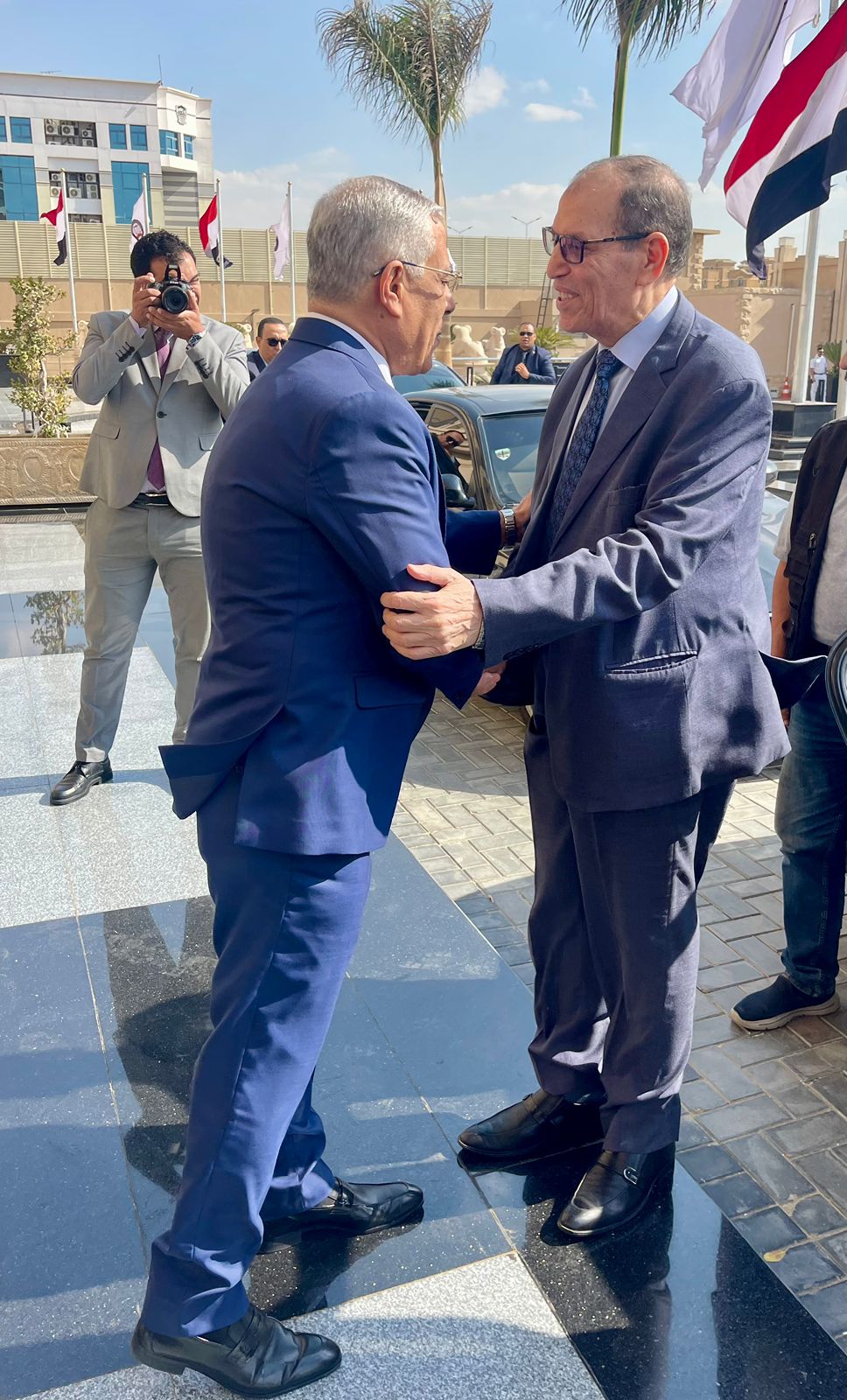 وكان في استقبال كل من: المستشار طارق أبو زيد رئيس الاستئناف رئيس مكتب الأموال المتحفظ عليها، و المستشار علي مختار رئيس الاستئناف مدير النيابات، و المستشارمحمد البياع - رئيس الاستئناف رئيس المكتب الفني.