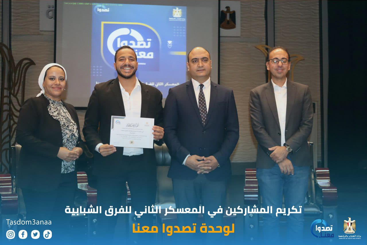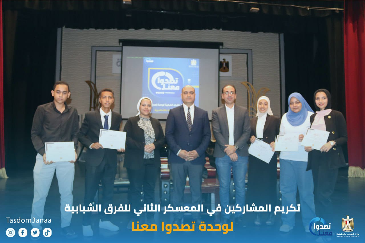 اختتمت وزارة الشباب والرياضة، من خلال الإدارة المركزية لشئون مكتب الوزير "وحدة تصدوا معنا"، فعاليات المُعسکر الثاني للفرق الشبابية لـ« وحدة تصدوا معنا»، بمشاركة ممثلي 11 محافظة [الإسكندرية؛ مطروح؛ الشرقية؛ الغربية؛ السويس؛ بورسعيد؛ المنيا؛ أسيوط؛ سوهاج؛ القاهرة؛ الوادي الجديد]، بالمدينة الشبابية في الإسكندرية، تحت رعاية الدكتور أشرف صبحي؛ وزير الشباب والرياضة.
