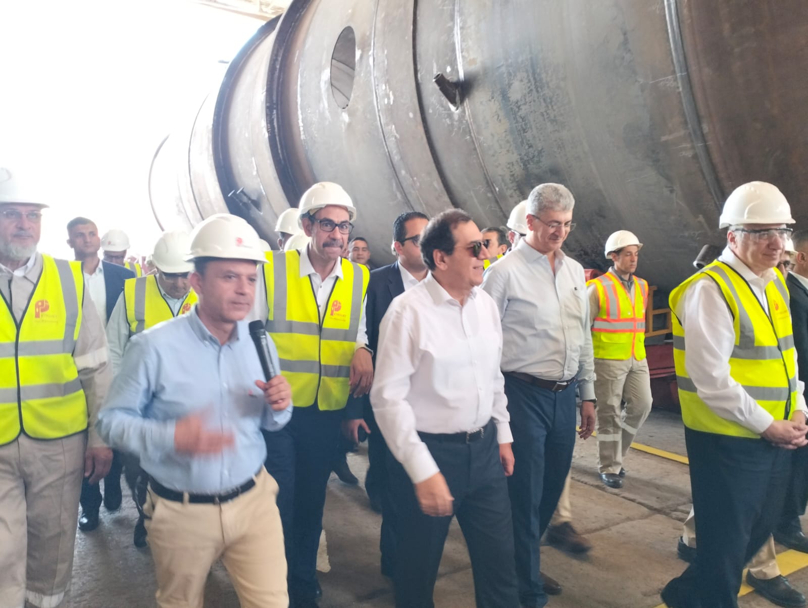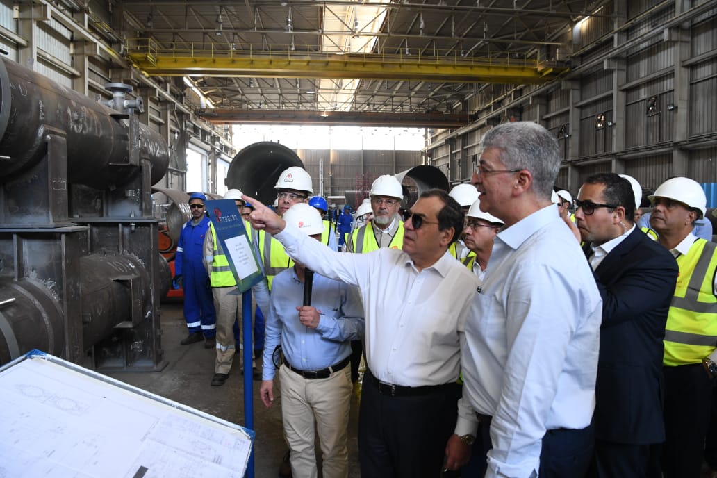 واستعرض اهم المعدات التخصصية التى تقوم الورش بتصنيعها ومنها المبادلات الحرارية وابراج التقطير واوعية الضغط وافران المعالجة الحرارية والمبردات الهوائية بالاضافة الى اعمال اصلاح وصيانة المعدات الاستاتيكية المتقادمة، لافتا إلى تاهيل واعتماد جميع ورش التصنيع بشهادات الجودة العالمية فى مجال تصنيع المعدات الاستاتيكية (ASME STAMP) ، مشيرا إلى اهم المعدات التى تم تصنيعها والتى ساهمت فى تنفيذ العديد من المشروعات الكبرى مثل مشروع تنمية حقل غاز ظهر ومشروع تطوير حقل غاز غرب الدلتا ومشروع مجمع الاسمدة الازوتية بالعين السخنة ومشروع مجمع الاسفلت الجديد بمعمل السويس لتصنيع البترول بالاضافة الى العديد من المشروعات الجارى تنفيذها اهمها مشروع تطوير مجمع غازات الصحراء الغربية التابع لشركة جاسكو ومشروع مجمع التفحيم لشركة السويس لتصنيع البترول ، ومشروع توسعات محطة الحمد للشركة العامة للبترول ومشروع توسعات المحطة البرية لحقل غاز ظهر ، ومشروع توسعات مصفاة ميدور ومجمع انوبك لإنتاج السولار والمنتجات البترولية عالية القيمة ومصنع إنتاج الالواح الخشبية متوسط الكثافة MDF .