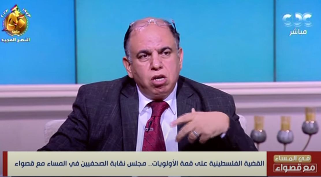 وقال خلال فقرة حوارية مع مجلس النقابة وصحفيين آخرين ببرنامج "في المساء مع قصواء"، المذاع على قناة "CBC"، تقديم الإعلامية قصواء الخلالي، مساء اليوم الاثنين، إنه صدر قرار من الجمعية العمومية لنقابة الصحفيين بحظر جميع أنواع التطبيع الشعبي والمهني والشخصي.
