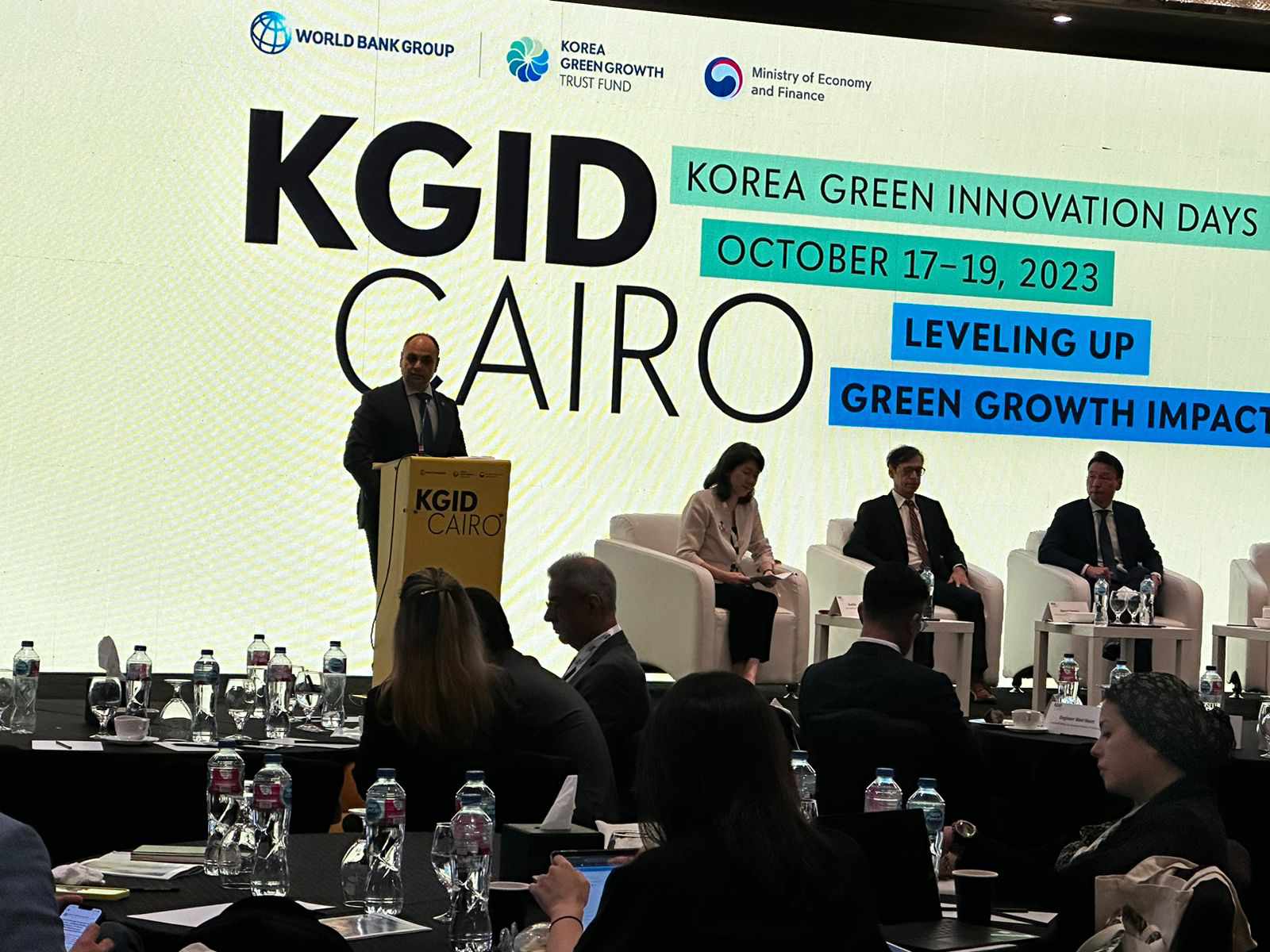 جاء ذلك خلال مشاركته في جلسة العمل نحو النمو الأخضر بين البنك الدولي وكوريا ومصر، ضمن فعاليات أيام كوريا للابتكار الأخضر 2023، كمنصة للتعرف على الحلول المتطورة وتعزيز الشراكات، والذي ينفذه البنك الدولي بهدف تبادل المعرفة حول النمو الأخضر، بتمويل من الصندوق الاستئماني الكوري للنمو الأخضر (KGGTF)، لتعزيز  تبادل النهج المبتكرة للتنمية المستدامة، وجذب الخبراء العالميين في النمو الأخضر وتغير المناخ والاستدامة، حيث يقام الحدث في مصر في الفترة من 17 إلى 19 أكتوبر 2023 تحت شعار "رفع مستوى آثار النمو الأخضر"، وذلك بمشاركة السيد ريتشارد دامانيا كبير اقتصاديين بقطاع التنمية المستدامة بالبنك الدولي، والسيد سونج وكيم من البعثة الرئاسية الكورية للحياد الكربوني والنمو الاخضر.