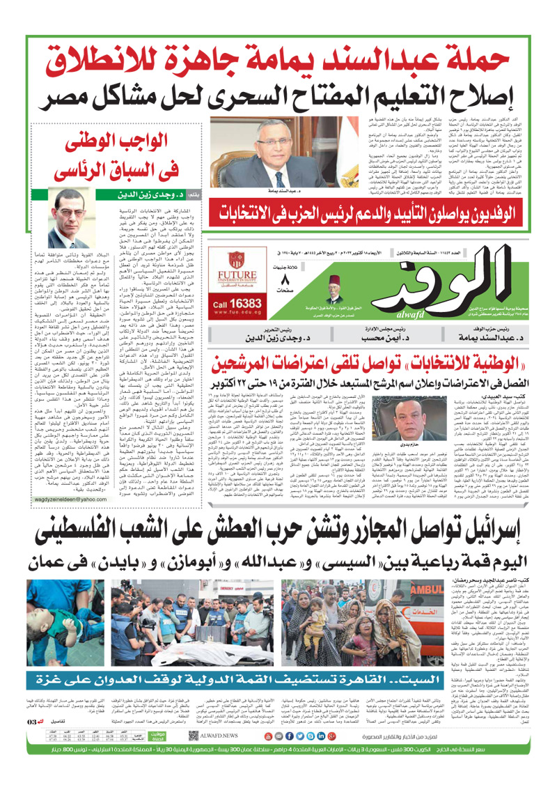 تنشر جريدة الوفد اليومية الورقية في عددها الصادر، غدًا الأربعاء، العديد من الموضوعات والتقارير الإخبارية المهمة، أبرزها: "حملة عبدالسند يمامة جاهزة للانطلاق".