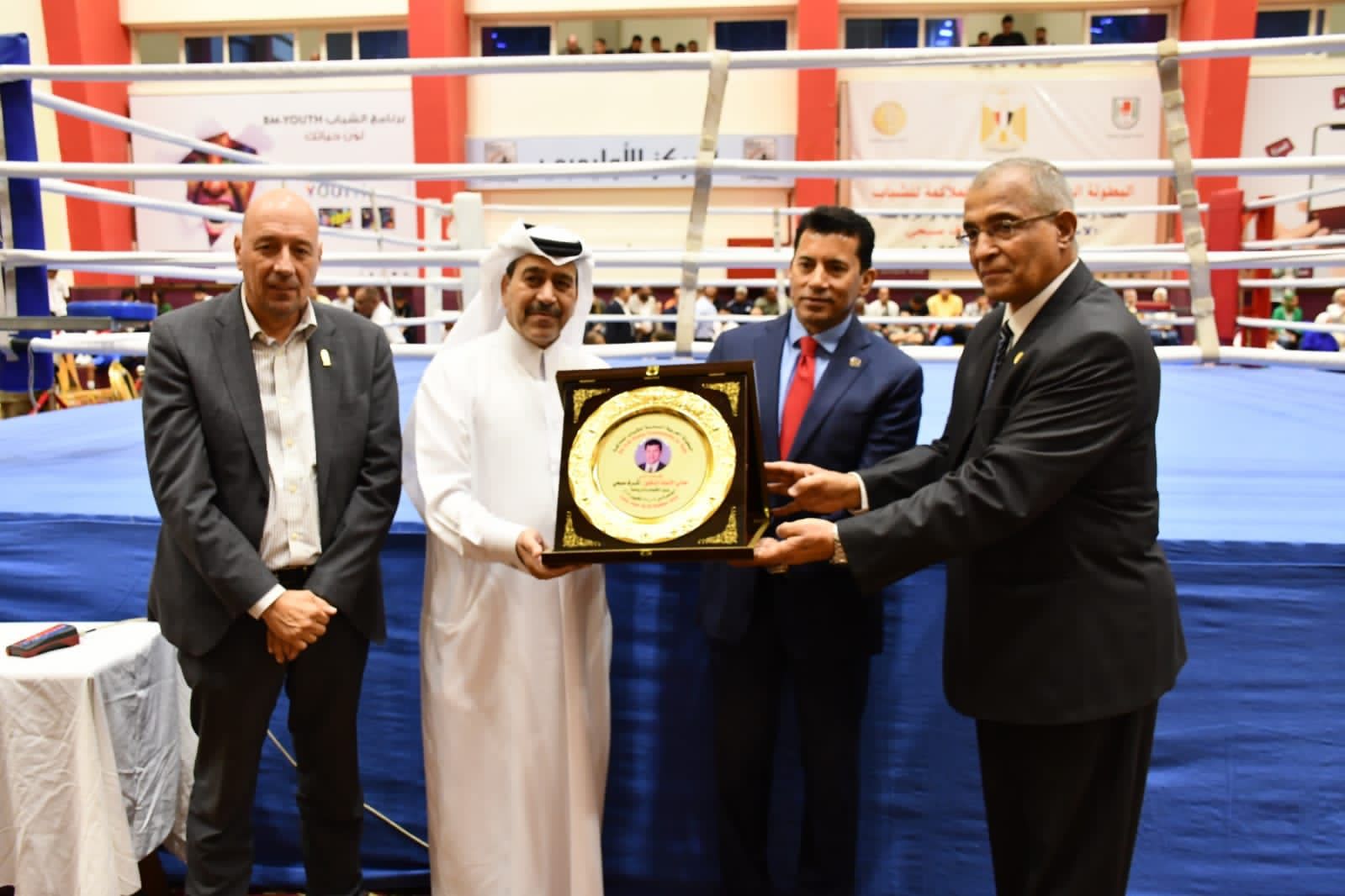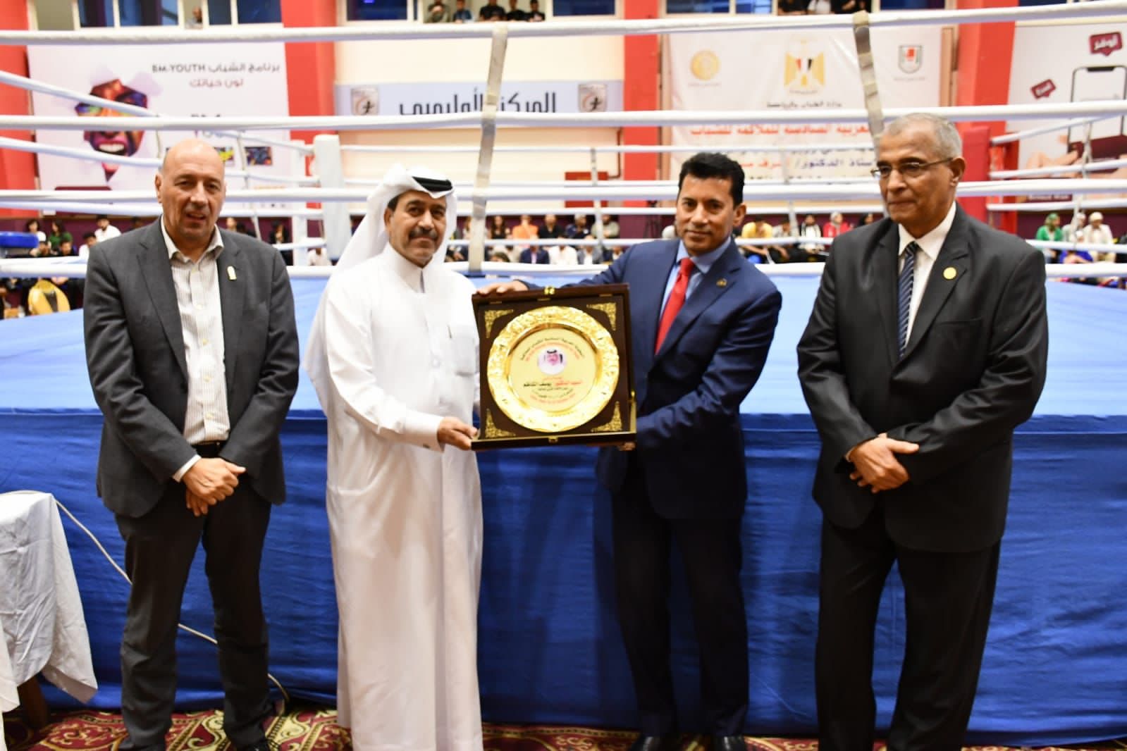 ومن جانبه تقدم الدكتور يوسف بن علي الكاظم، رئيس الإتحاد العربي للملاكمة، بالشكر لوزير الشباب والرياضة على مجهوداته الكبيرة والتي يقوم بها بالتعاون مع الإتحاد العربي من أجل النهوض برياضة الملاكمة في الدول العربية.