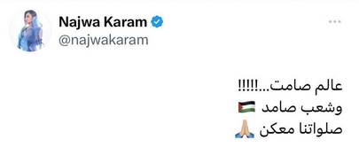 وعبرت الفنانة نجوى كرم عن غضبها، قائلة: "عالم صمت وشعب صامد صلواتنا معكن"