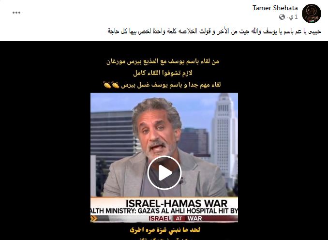 وانتقد باسم يوسف خلال المقابلة، أفعال أدت إلى قتل المدنيين سواء من جانب حركة المقاومة الإسلامية حماس أو الجيش الإسرائيلي، مشيراً إلى أن عائلة زوجته من أصل فلسطيني، وتعيش في غزة، ما يجعلها شاهدة على ما يحدث على أرض الواقع.