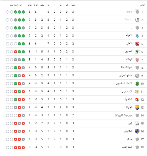 وكان المصري البورسعيدي فاز في مباراته الأخيرة على الداخلية بثلاث أهداف مقابل هدف، فيما سقط طلائع الجيش أمام فيوتشر بهدفين نظيفين، بينما تعادل سيراميكا مع فاركو بهدفين لكلاهما.