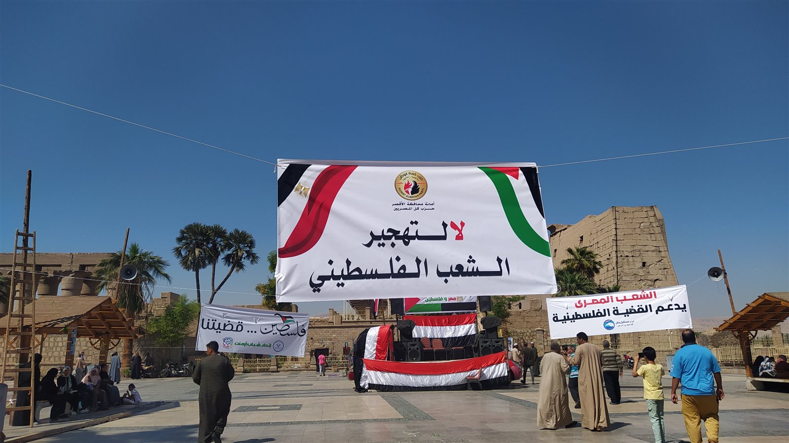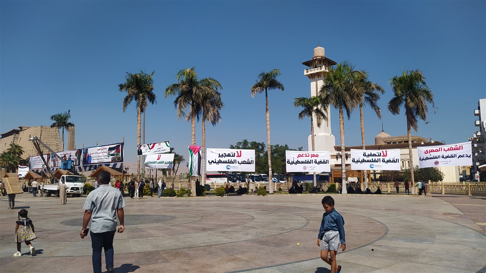 لا لتهجير الشعب الفلسطيني .. لافتات دعم القضية الفلسطينية في ميدان أبو الحجاج بالأقصر| صور