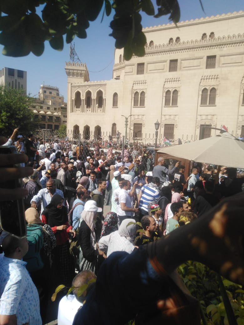 خرج الآلاف من المصلين بالجامع الأزهر الشريف، عقب صلاة جمعة اليوم 20 أكتوبر 2023، في مظاهرات حاشدة لدعم القضية الفلسطينية، ومؤازرة الأشقاء في فلسطين الذين يصمدون أمام جرائم الاحتلال، وقتل المدنيين رجالاً ونساءً وأطفالًا.