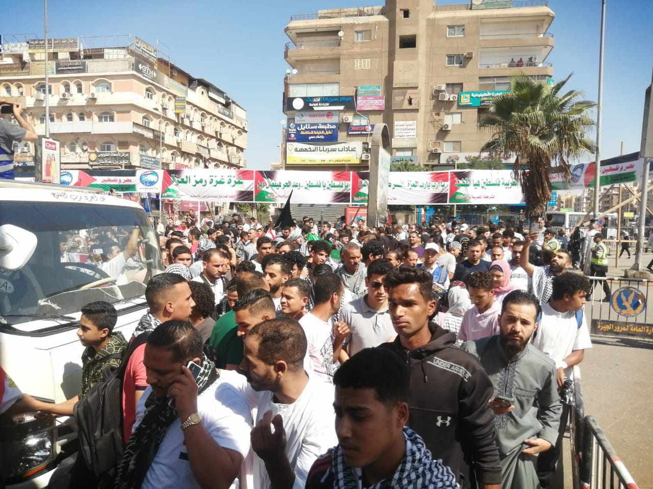 وتوافد الآلاف من المواطنين على ميدان الحصري، للمشاركة بمسيرات منددة بالعدوان الصهيوني على غزة.
