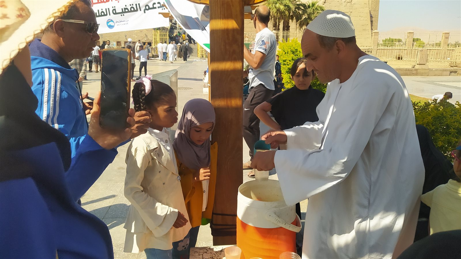 بصوت جهوري ودعوات للمقبلين على الميدان، يرحب الطيب عبد السلام على طريقته الخاصة بالمتظاهرين بميدان ابو الحجاج بالأقصر، مناديًا: الذي اطعمهم من جوع وآمنهم من خوف.. بسم الله الرحمن الرحيم، يامرحب بالزائرين، اشرب وادعيلي…