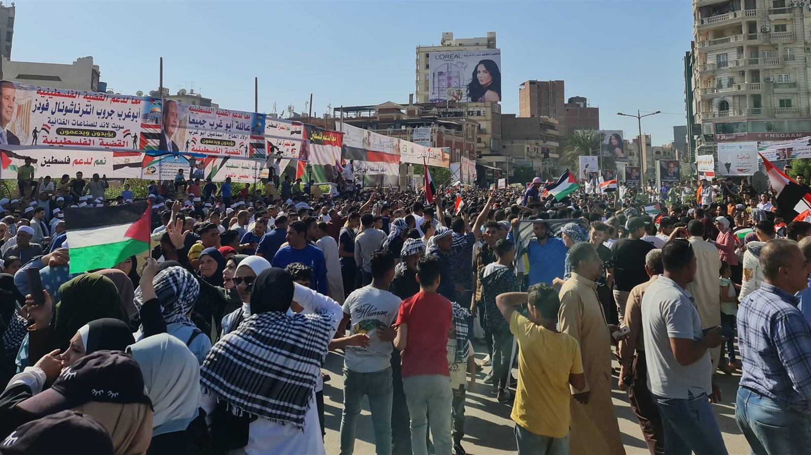 استمرار توافد المتظاهرين على ميدان السواقي بالفيوم دعمًا للشعب الفلسطيني