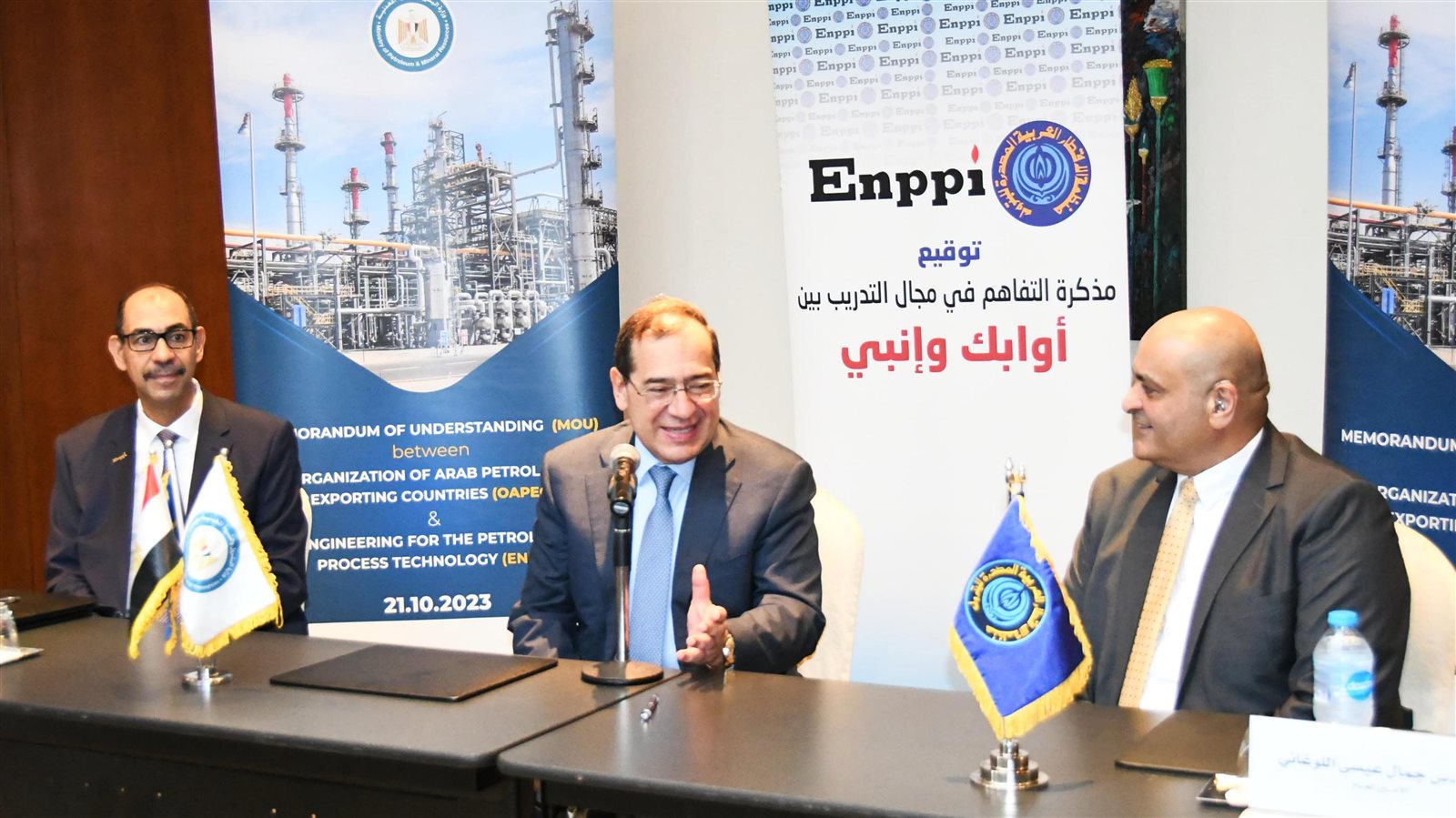 شهد المهندس طارق الملا وزير البترول والثروة المعدنية المهندس توقيع مذكرة تفاهم للتعاون في مجال التدريب بين شركة إنبي الذراع الهندسى لوزارة البترول والثروة المعدنية ومنظمة الأقطار العربية المصدرة للبترول (أوابك).