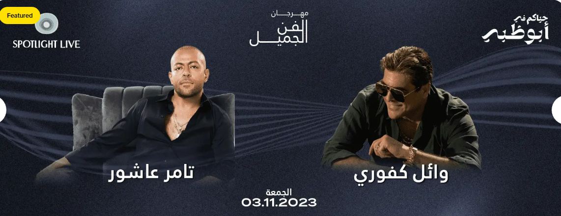 في ليلة ثنائية مميزة يجتمع فيها الفن اللبناني والمصري مع الفنان تامر عاشور والفنان وائل كفوري، ضمن موسم الحفلات الشتوية في الإمارات.