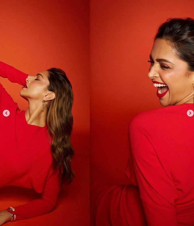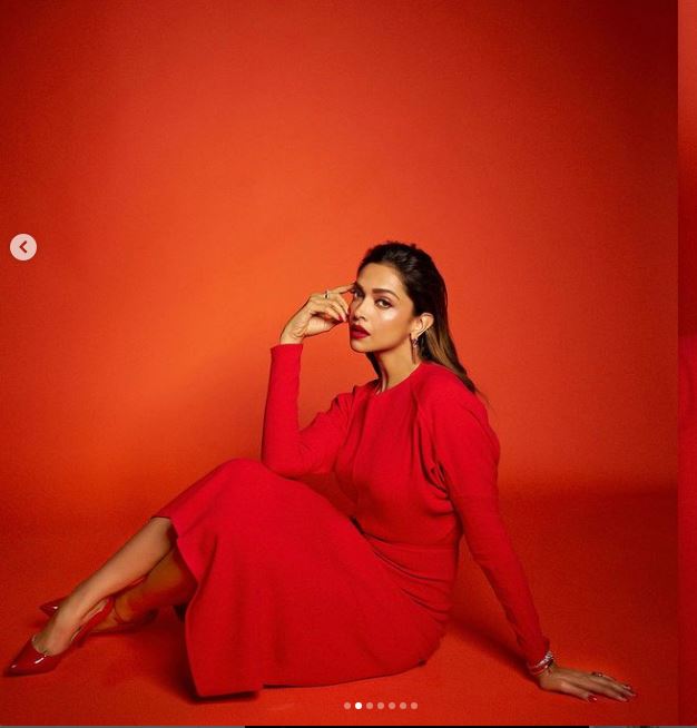 وبدت ديبيكا بادكون بإطلالة مفعمة بالأنوثة والجاذبية وكأنها زهرة في بستان الزهور، حيث ارتدت فستان طويل مجسم، بأكمام طويلة، صمم من قماش ناعم باللون الأحمر الصارخ، عكس الفستان قوامها الممشوق ووزنها المثالي وجعلها تشبه عارضات الأزياء العالميات.
