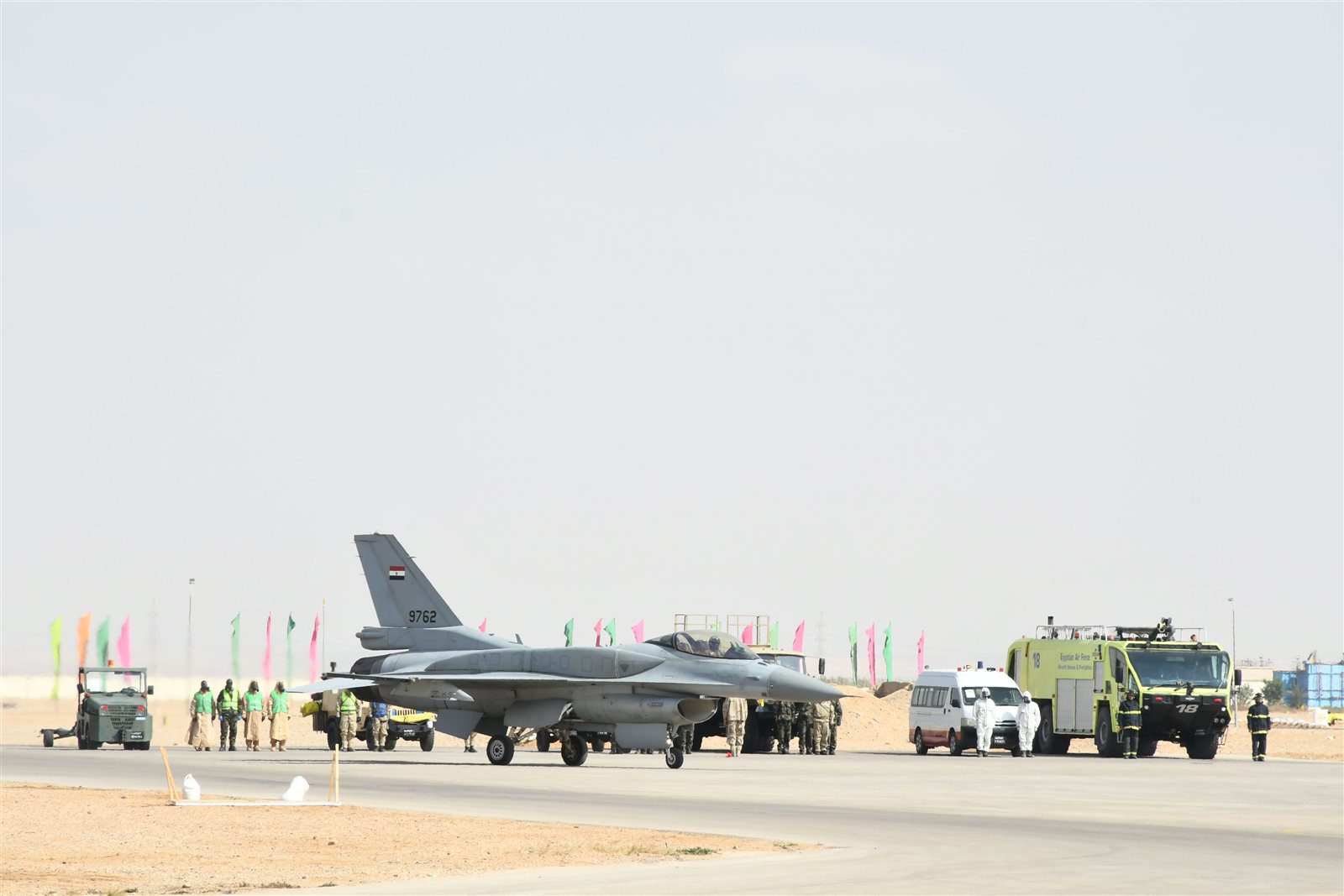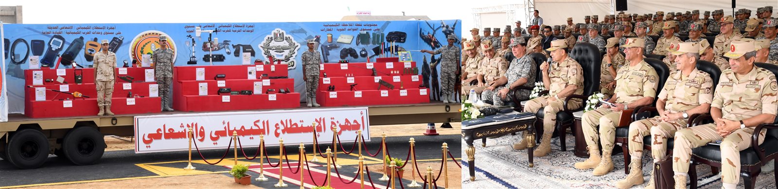 شهد الفريق أسامة عسكر رئيس أركان حرب القوات المسلحة تنفيذ بياناً عملياً لأنسب أسلوب لأعمال التطهير الكيميائى لإحدى القواعد الجوية بإستخدام أحدث وسائل وأجهزة التطهير الكيميائى المتطورة،