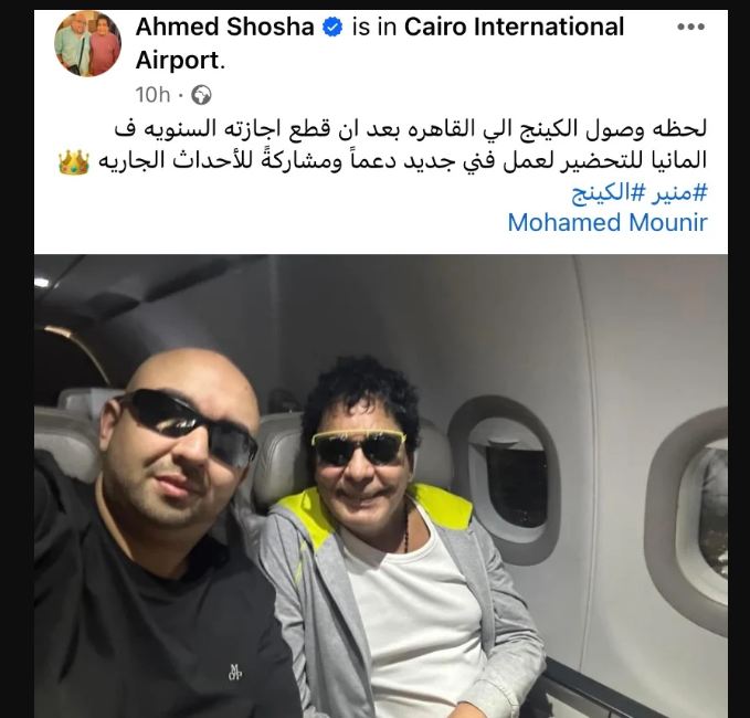 أعلن مصدر مقرب من الفنان محمد منير، عن استعداد الكينج لتحضير عمل فنى جديد تضامنا مع أحداث فلسطين، ونشر صورة تجمعه برفقة محمد منير من الطائرة وعلق قائلاً: " لحظة وصول الكينج إلى القاهرة بعد أن قطع إجازته السنوية في ألمانيا للتحضير لعمل فني جديد دعماً ومشاركة للأحداث الجارية".