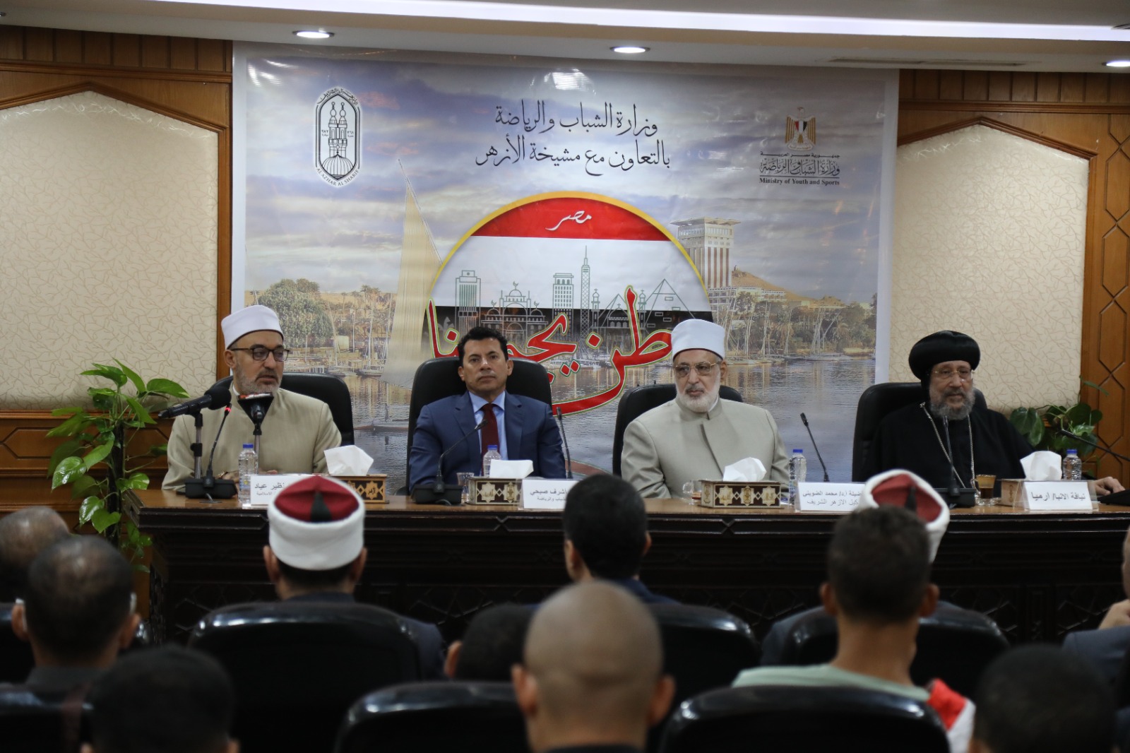 شارك الدكتور نظير عياد الأمين العام لمجمع البحوث الإسلامية والمشرف على مركز الأزهر العالمي للرصد والفتوى الإلكترونية في فعاليات تدشين مبادرة "وطن يجمعنا – محبة وسلام"، والتي ينظمها الأزهر الشريف بالتعاون مع وزارة الشباب والرياضة؛ وذلك بحضور الدكتور محمد الضويني وكيل الأزهر الشريف، والدكتور أشرف صبحي وزير الشباب والرياضة، والأنبا إرميا الأسقف العام للكنيسة القبطية الأرثوذكسية رئيس المركز الثقافي القبطي الأرثوذوكسي، والدكتور محمد أبو زيد الأمير الأمين العام لبيت العائلة المصرية وعدد من قيادات الأزهر الشريف ووزارة الشباب.