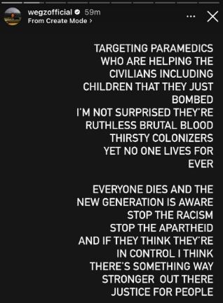 ويجز يثور بسبب فلسطين .."أوقفوا العنصرية"