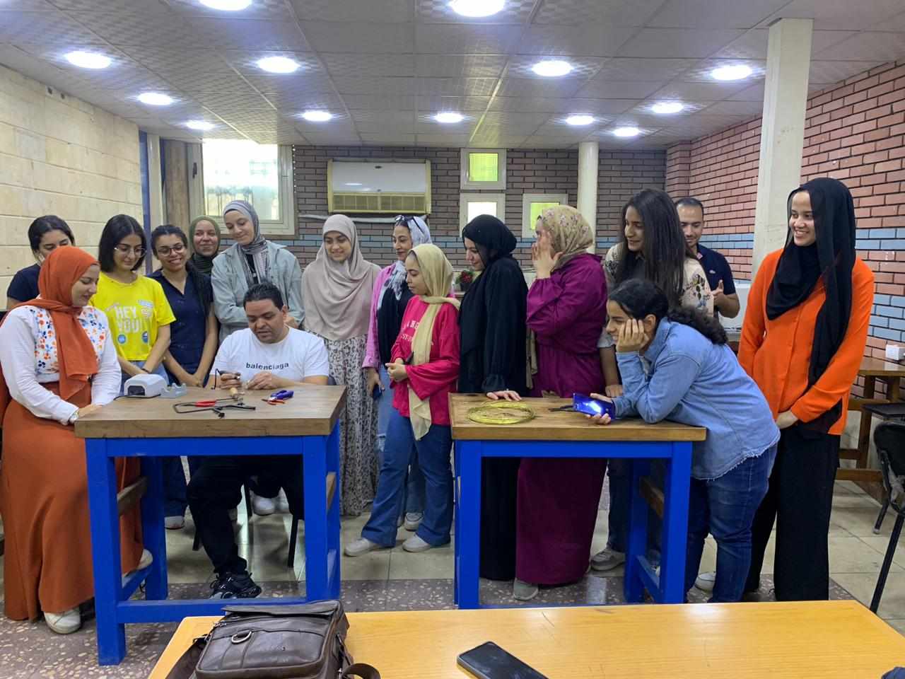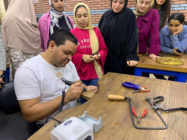 وأشار إلى أننا نقوم بتدريب الطلاب في مجال تصميم المجوهرات ومراحل تنفيذها وكيفية تفادي الأخطاء التي من الممكن التعرض لها عند التصميم، وبناء العقلية الابتكارية والإبداعية لدى الطلاب ليكون لديهم ما يميزهم في سوق العمل الذ تشتد فيه المنافسة وتتعدد فيه الخبرات، وهذا سيجعل الجانب العلمي والعملي يسيران في درب واحد يكملان بعضهما البعض، ويعالج كل منها القصور أو الخلل الذي يعاني منه الجانب الآخر.