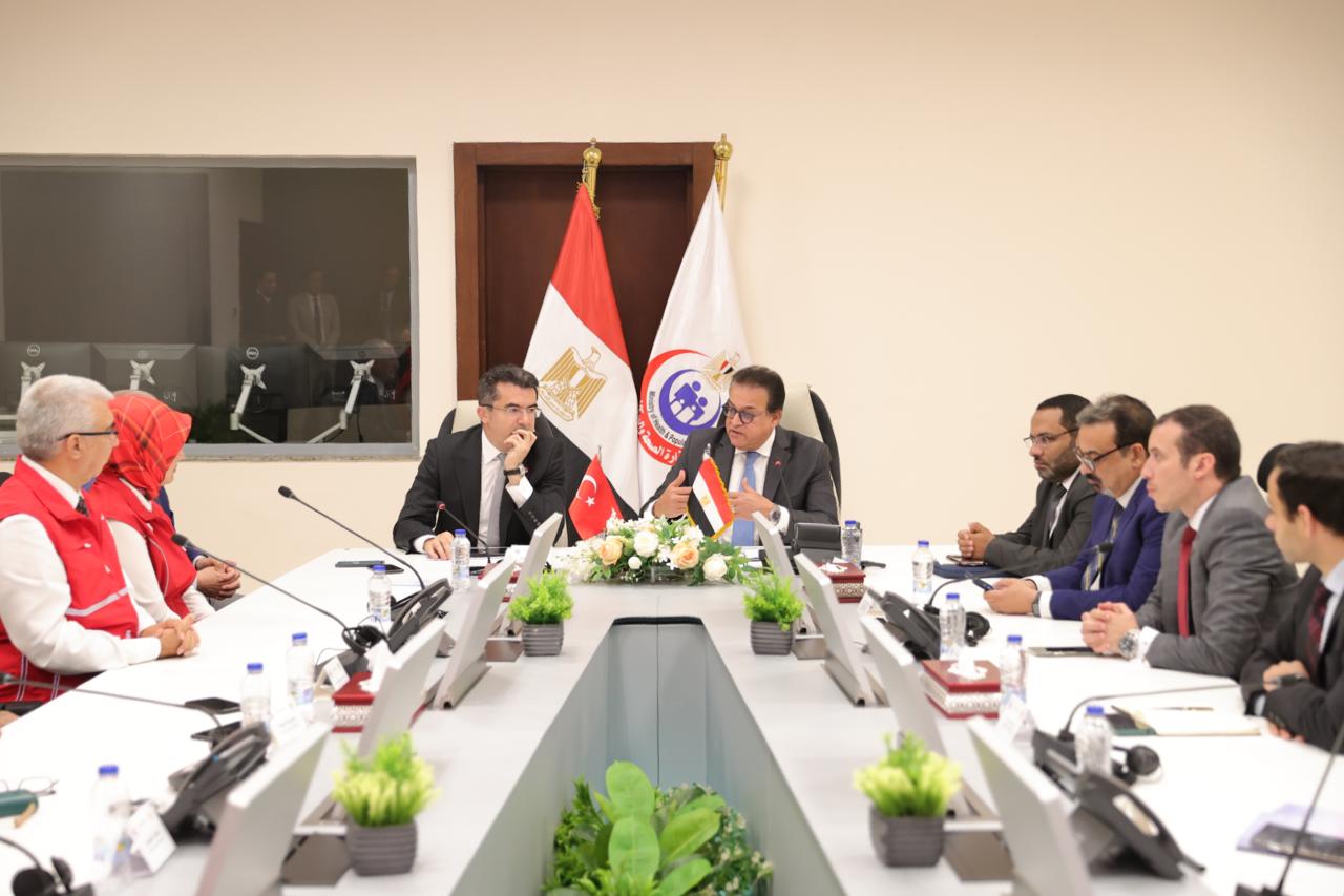 استقبل الدكتور خالد عبد الغفار، وزير الصحة والسكان، أوكاي ميميش، محافظ ورئيس هيئة الكوارث والطوارئ التركي AFAD  وصالح موطلو شن، السفير التركي لدى جمهورية مصر العربية، والدكتورة  فاطمة يلماز، رئيس جمعية الهلال الأحمر التركي، والوفد المرافق لهم، بغرفة إدارة الأزمات والطوارئ بمقر الوزارة بالعاصمة الإدارية الجديدة، وذلك لبحث سبل التعاون بين البلدين لإيصال المساعدات الطبية لأهالي غزة، ووسائل تقديم الدعم الطبي لهم.