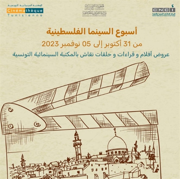 تنطلق فعاليات أسبوع السينما الفلسطينية خلال الفترة من 31 أكتوبر إلى 5 نوفمبر 2023 بقاعة الطاهر شريعة بمدينة الثقافة الشاذلي القليبي، تحت إشراف وزارة الشؤون الثقافية.