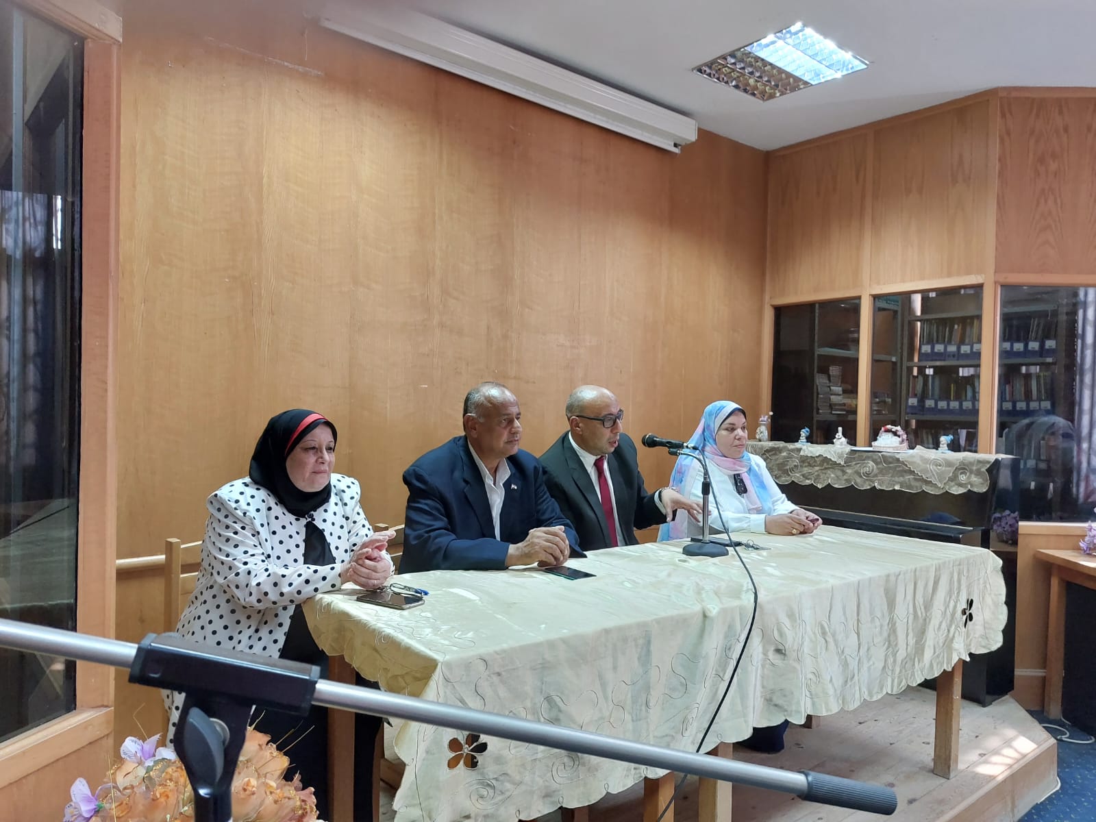 تضمنت الاحتفالية تحية العلم أمام بوابة المكتبة المركزية في جامعة حلوان ثم جلسة افتتاحية بقاعة المكتبة الموسيقية عن المناسبة وتم خلالها التعريف بقاعات المكتبة المركزية والخدمات المقدمة.