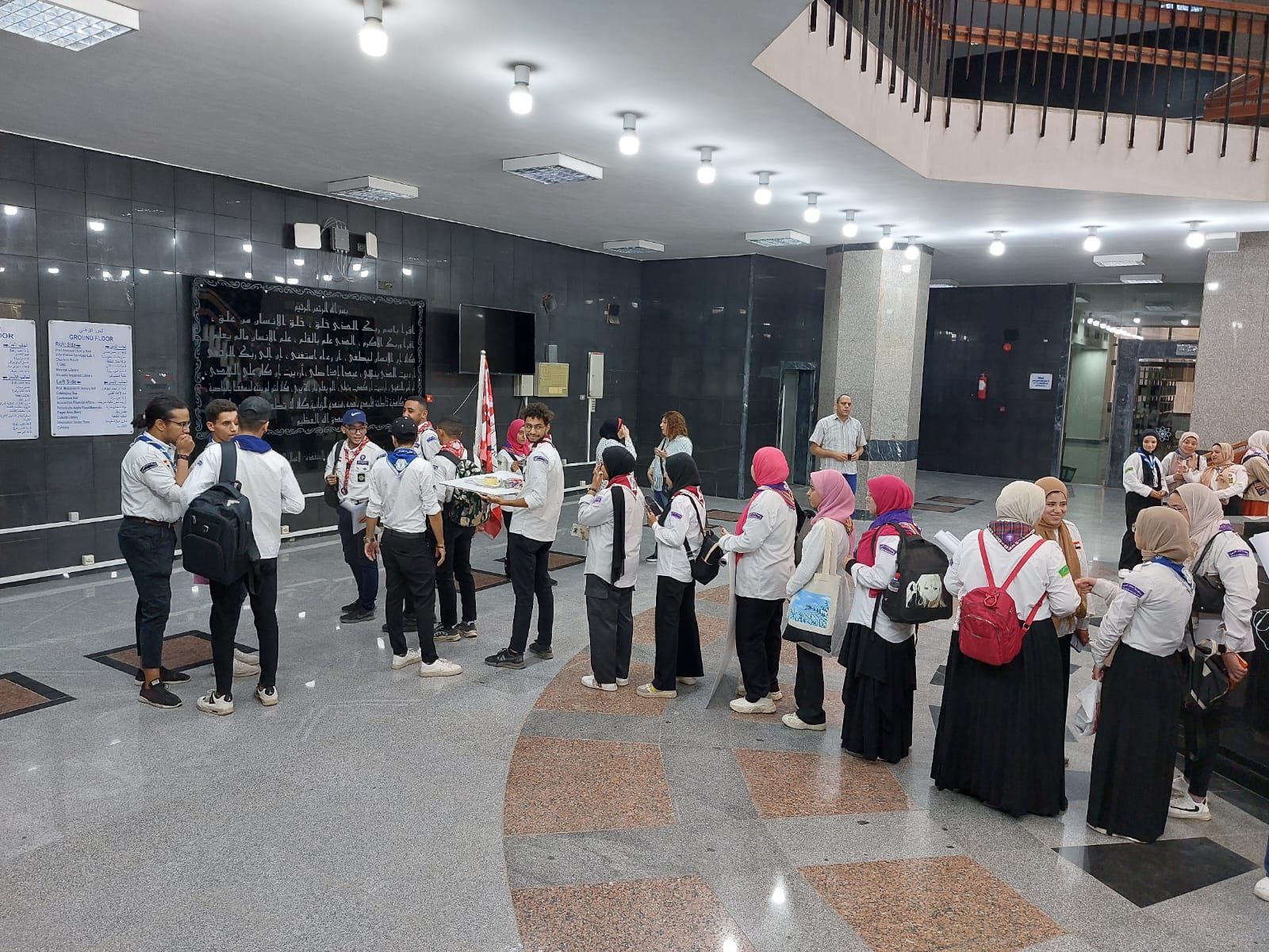 وفى الختام تم عمل جولة تفقدية لقاعات الكتب المتخصصة بالمكتبة المركزية تمهيدا لعمل مسابقة تصميم دعوة لطلاب الجامعة بزيارة  المكتبة.