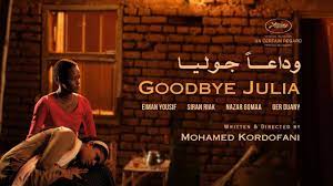 وتدور أحداث فيلم وداعًا جوليا في الخرطوم قبيل انفصال الجنوب، حيث تتسبب منى، المرأة الشمالية التي تعيش مع زوجها أكرم، بمقتل رجل جنوبي، ثم تقوم بتعيين زوجته جوليا التي تبحث عنه كخادمة في منزلها ومساعدتها سعياً للتطهر من الإحساس بالذنب.