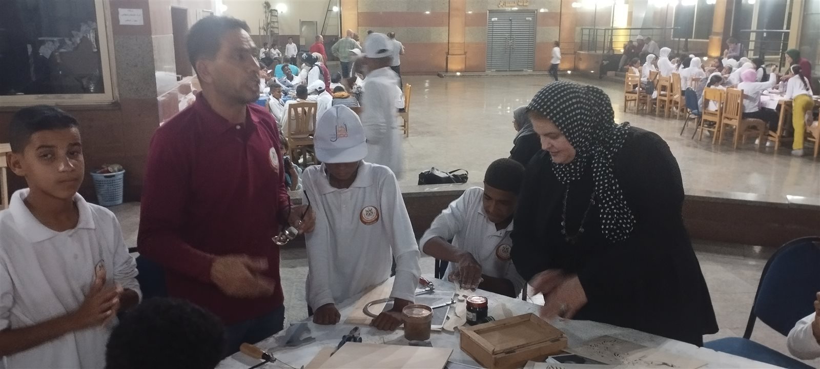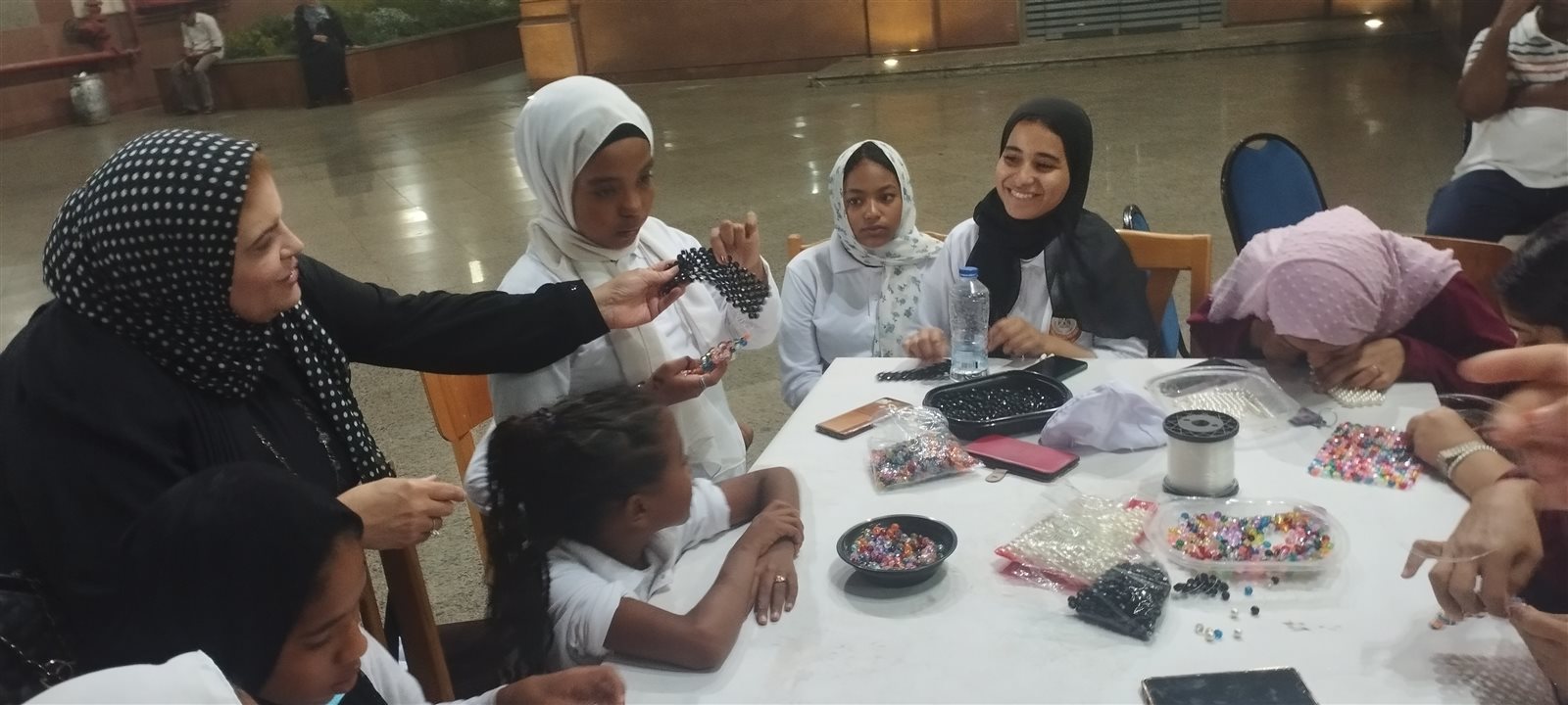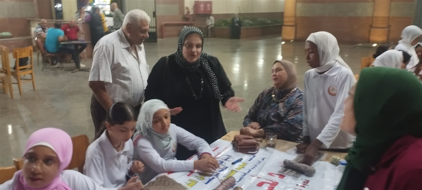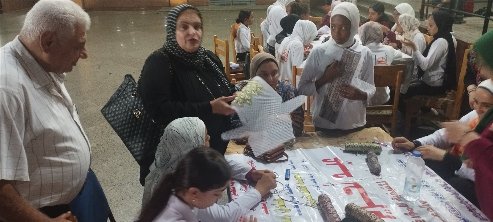 والقت نظرة على كيفية تعليم الشنط بالشبك التى تقدمها نجلاء شحاته، وكيف استفاد منها الأطفال ، مقدمة بعض النصاىٔح والإرشادات للاطفال ، وأشادت بطريقة عمل الشنط باكثر من شكل وبنقوش وألوان جميلة بدأ الاطفال فى الورش تعلُمها، كما تفقدت ورشة تعليم الشنط بالخرز التى تقدمها منى عبد الوهاب.