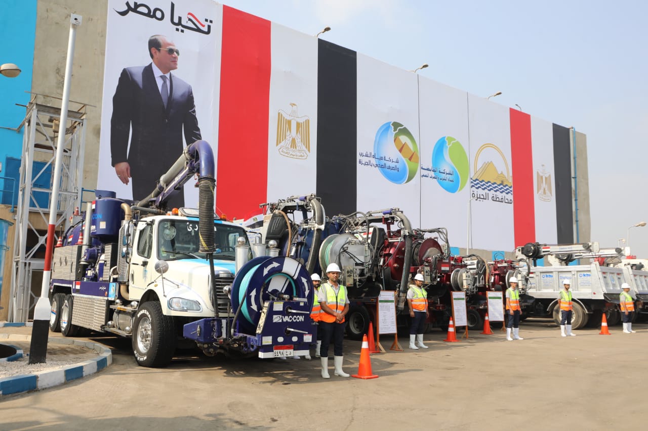 محافظ الجيزة يشهد اصطفافًا لسيارات ومعدات الطوارئ لشركة مياه الشرب والصرف الصحي
