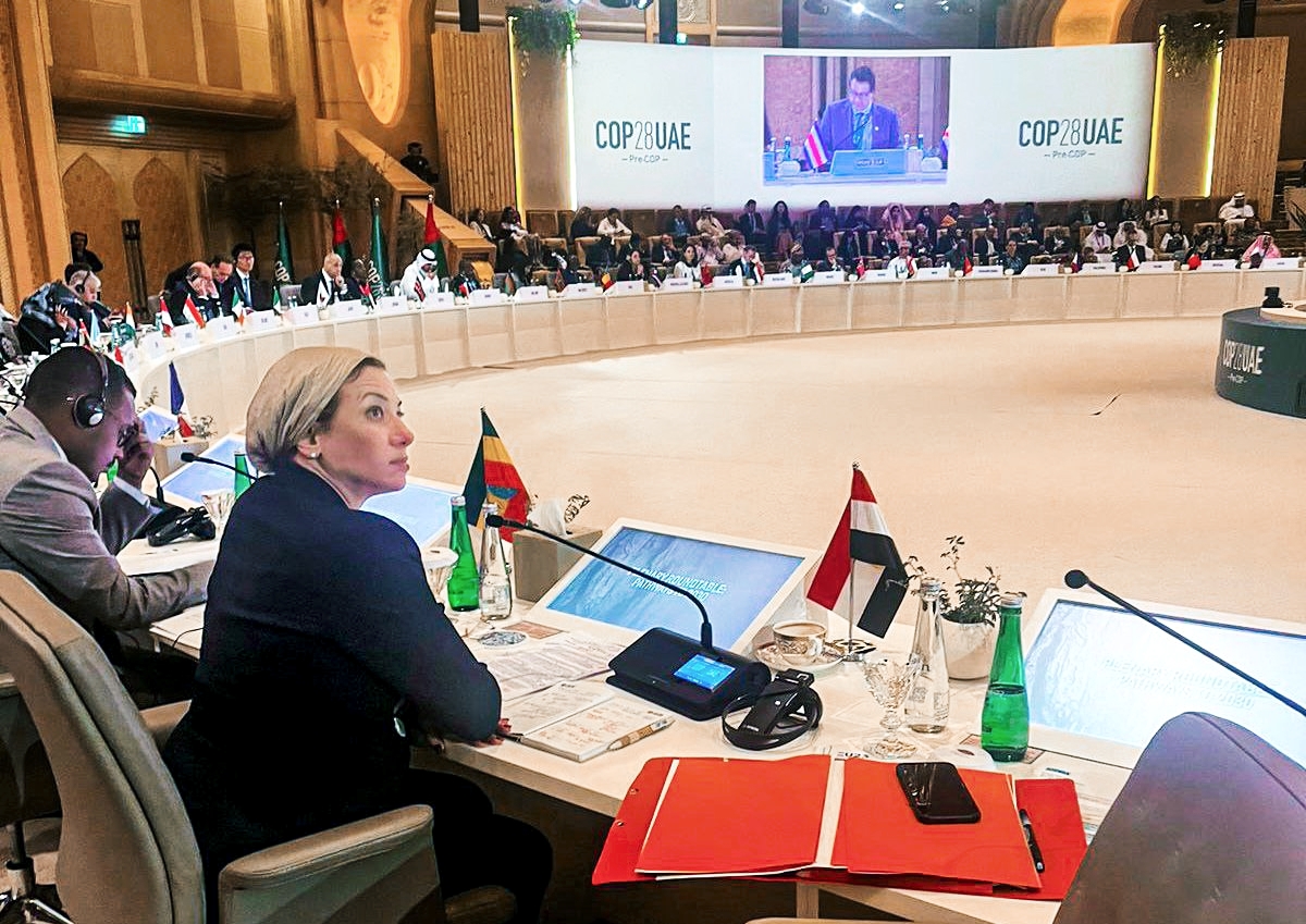 جاء ذلك خلال مشاركتها فى المائدة المستديرة حول المسارات نحو ٢٠٣٠ بما يحقق التحول الشامل، وذلك خلال مشاركتها في مشاورات الشق التمهيدي لمؤتمر المناخ COP28، بمدينة أبو ظبي بدولة الإمارات العربية، وذلك بهدف الخروج بخطوات فارقة نحو تنفيذ اتفاق باريس، من خلال اختتام التقييم العالمي للمناخ، بحيث تحدد نتائج المؤتمر اتجاه العمل المناخي عبر جميع ركائز اتفاق باريس لتوفير استجابة شاملة من خلال السياسات والجهود المتوافقة مع مراعاة الاعتبارات العلمية والإنصاف.